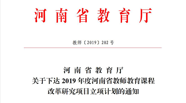 近日,河南省教育厅发布《关于下达2019年河南省教师教育课程改革研究项目立项计划的通知》(教师〔2019〕202号),我院教师闫霞申报的课题获批立项。
