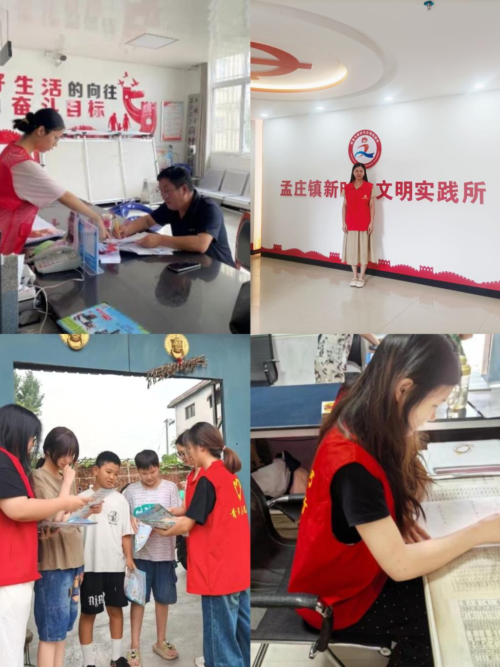 22小教本03班李欣婷同学在信阳市光山县“青鸟归巢,发展有我”的社会实践活动中,参与家乡光山县文化发展事业,感受服务的魅力和力量,认识到在乡村振兴中文化产业振兴的重要性。23教育本02班王忆飞同学在孟庄镇人民政府文化文明办,使用“云上辉县”APP,开展新媒体写作,共计发布稿件80余篇,助力家乡文化宣传事业发展。