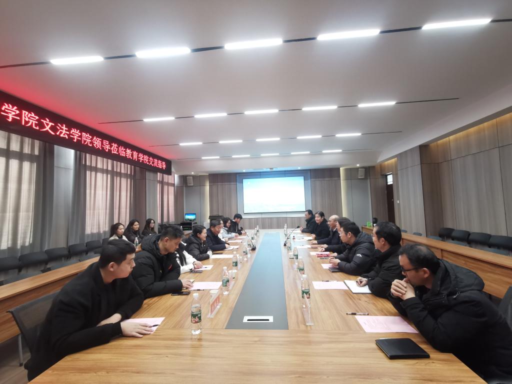 名誉院长致欢迎词,他代表太阳集团tyc138对闫江涛院长一行的到来表示热烈的欢迎,并介绍了我院在师资队伍、专业建设、科学研究、学生就业以及党建工作所取得的成果。他说,郑州工商学院文法学院发展势头强劲,十分重视高质量应用型人才的培养。目前,我院正在积极探索数智赋能师范生职前素养培养,以及如何更好的将数智技术融入教育的各个环节,接下来,愿和文法学院进行更深入的交流。