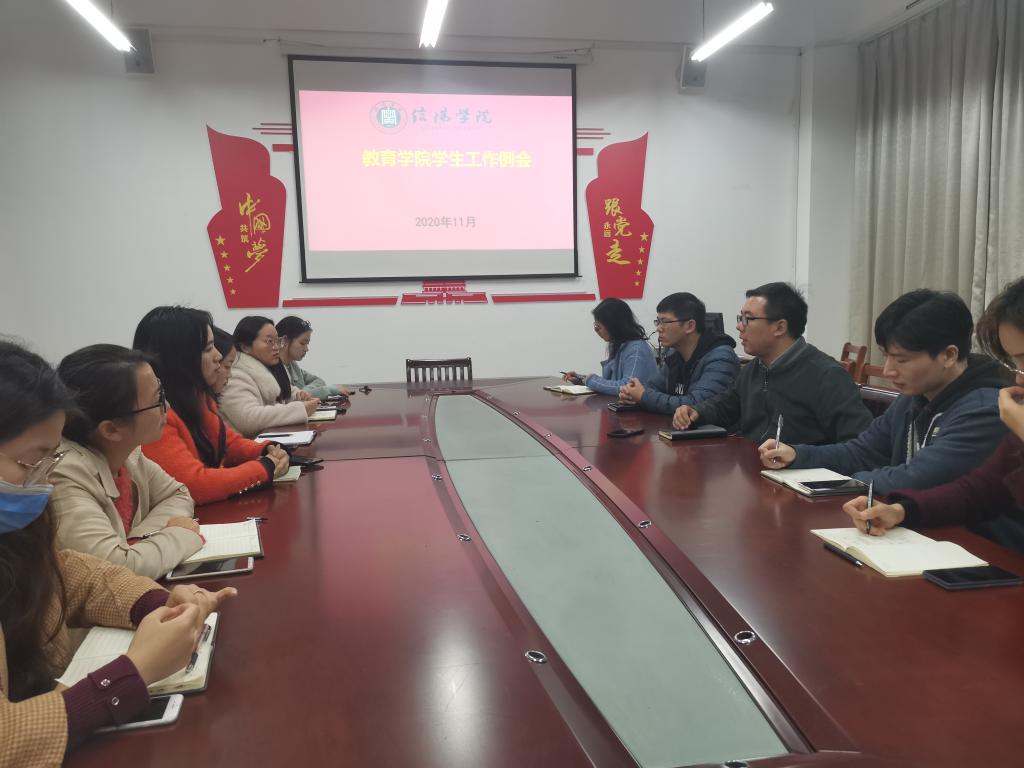 2020年11月18日上午,太阳集团tyc138在社科楼107会议室召开学生工作例会,本次参会人员有太阳集团tyc138党总支书记张甲楠、学工干事郝昊和全体辅导员,会议由郝昊主持。
