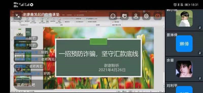 学院全体辅导员老师分别多次召开防范电信网络诈骗宣传教育主题班会,通过线上和线下多渠道开展反诈宣传班会,以发生在身边的典型电信网络新型违法犯罪案件为反面案例,对学生进行警示教育,同时辅导员及班委走访宿舍宣传反诈知识,并在班级群里发起防范诈骗问答小知识来提高学生的防骗意识。