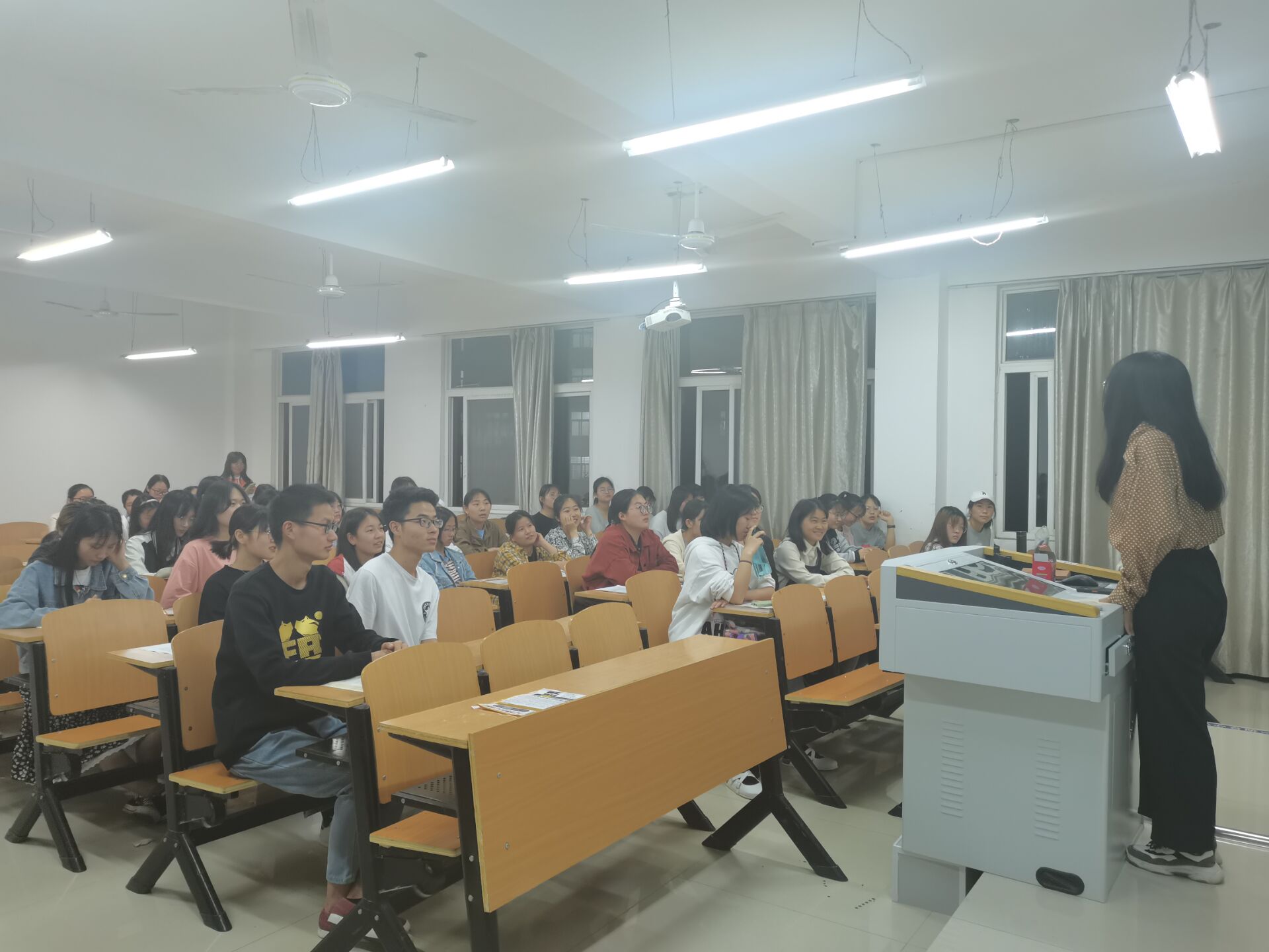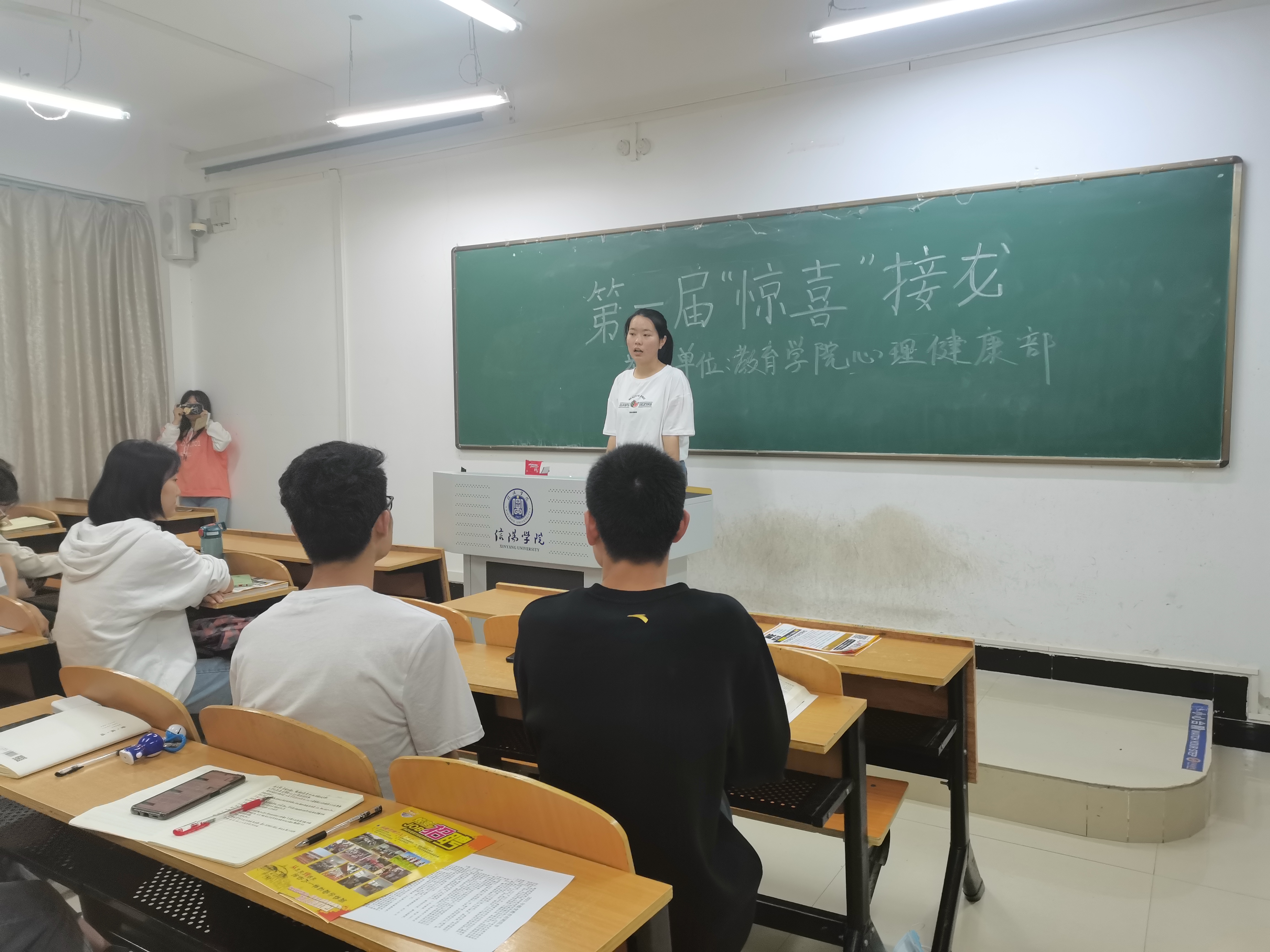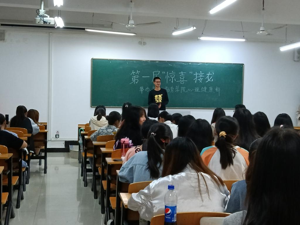 2021年5月17日晚上19:30,在2020级教育学类本科1班和2020级教育学类本科2班开展健康节活动。心理健康部向学生详尽的介绍了“5.25”的内涵即“我爱我”,心理健康部还特地组织了“热身”活动——“逢七必过”和“U点轰炸”。在活动中,学生们体验到了心理健康的真谛,决心为明天美好的生活而奋斗,不仅要自己过得精彩,而且还要周边人享受到心理健康得快乐。