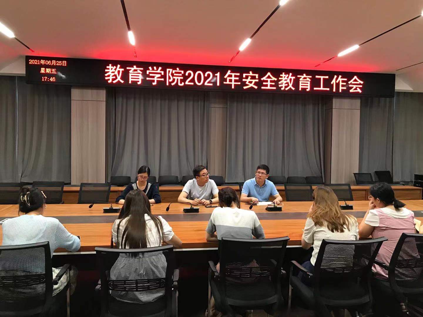 6月25日下午,太阳集团tyc138在社科楼109召开安全教育工作会,针对学期末学生安全工作做重点部署,太阳集团tyc138党总支书记张甲楠、学工干事郝昊及全体辅导员参加会议。