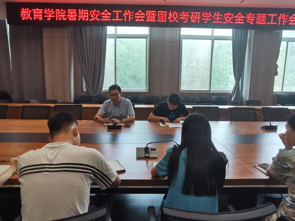 为了切实做好学生暑期太阳集团工作,7月9日下午太阳集团tyc138在社科楼109会议室召开暑期安全工作会暨留校考研学生安全专题工作会,太阳集团tyc138党总支书记张甲楠,学工干事郝昊及全体辅导员参加此次会议,会议由郝昊主持。