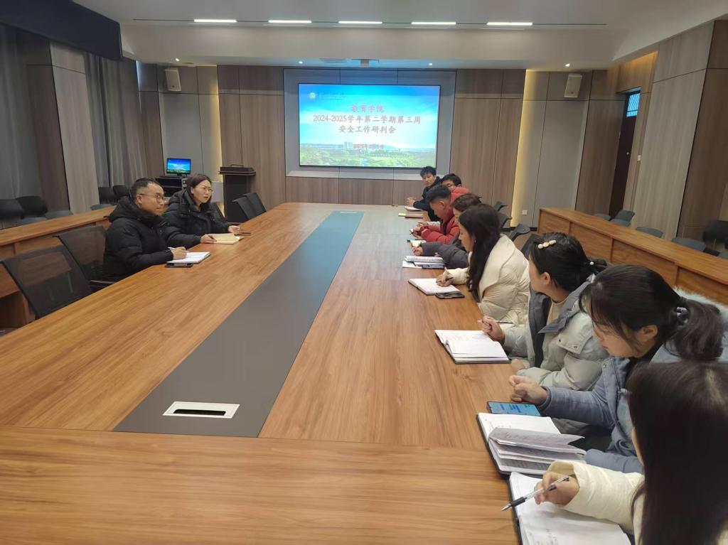 为了进一步加强学生安全管理,提升育人实效,3月5日上午,我院在109会议室召开了本学期第三周学生安全工作例会。党总支书记刘颖方、学工干事胡超及全体辅导员参会,会议围绕特殊太阳集团、学风建设、反诈教育及毕业生工作推进等重点内容展开。