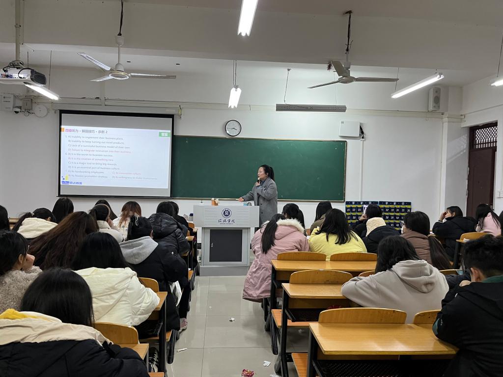 为了帮助同学们更好地备考大学生英语四六级,切实提高我院学生英语四六级通过率,并进一步推动学院学风建设。12月6日,学院特邀请原新东方讲师杨艳琪老师给同学们作了以“魔法打败魔法---从结构主义视角认知四六级和考研英语”为主题的报告,报名此次四六级考试的全体同学到场聆听了报告。