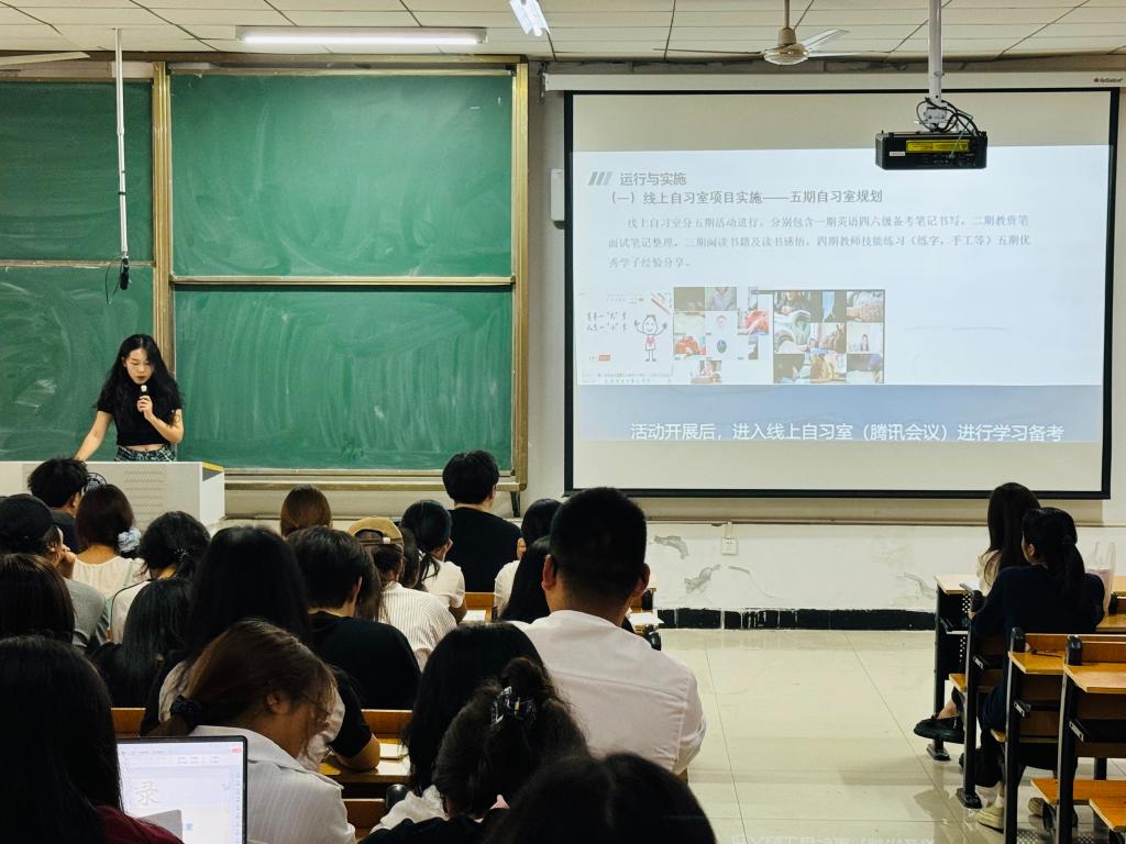育梦同行助学风,阁中奋进启新程--“育梦阁”学习自习室项目针对大学生自律能力不足、集中学习机会少等问题,结合国家加强师范生技能培养的政策导向,旨在为学生提供高效学习环境。为此我院学生会组织开展线上线下相结合的学习活动,如线上开办了五期自习室,线下组织学风互助小组、读书分享会和学习达人经验分享会等活动。学生通过参与本项目共享教育资源,培养良好学习习惯,进而有效提升自己的学习效率与自律性。在未来,该项目将深化服务理念,优化活动流程,建立反馈机制,持续提升项目质量,助力学生成长。
