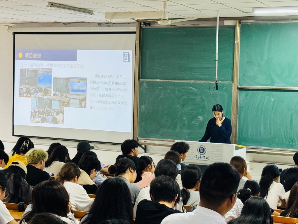求真知,育真才--师范生综合技能提升专项行动项目针对师范生实践能力不足的痛点,秉承“以赛促学,以赛提质”的理念,设计并实施一系列师范生技能比赛,搭建师范生技能提升平台。以“三笔字大赛”和“教师风采大赛”为抓手,构建“学院统筹-学生会执行-班级联动”三级联动机制,通过实战演练、专业教师指导、线上线下双渠道培训,使得学生教学基本功显著提升,该项目成效显著,获得参与同学的广泛认可,其中优秀参与同学在省级教学技能赛事中屡获佳绩。