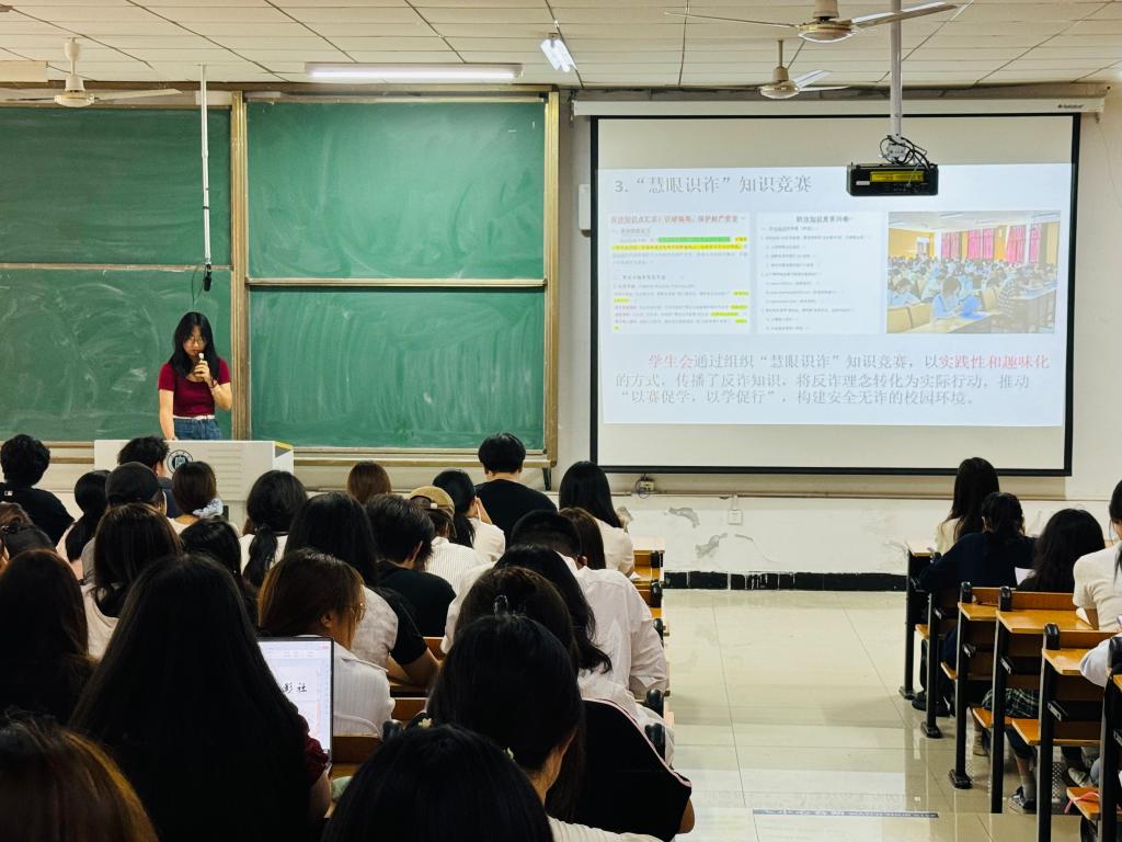 反诈不打烊,平安筑城墙--守护大学生钱袋子行动项目旨在响应国家反诈政策号召,针对学生群体防范意识薄弱、易受诈骗的问题,构建校园防诈教育体系。该项目以学生会为主导,与辅导员和班委通力合作,组成反诈工作小组。通过线上线下结合的形式开展五项特色活动,即反诈主题演讲比赛、反诈短视频创作大赛、反诈知识竞赛、反诈班级说和反诈小课堂,持续且系统地向大学生普及反诈知识。项目实施以来成效显著,学生反诈知识得到丰富,安全意识增强,同时学生会服务能力得到强化。