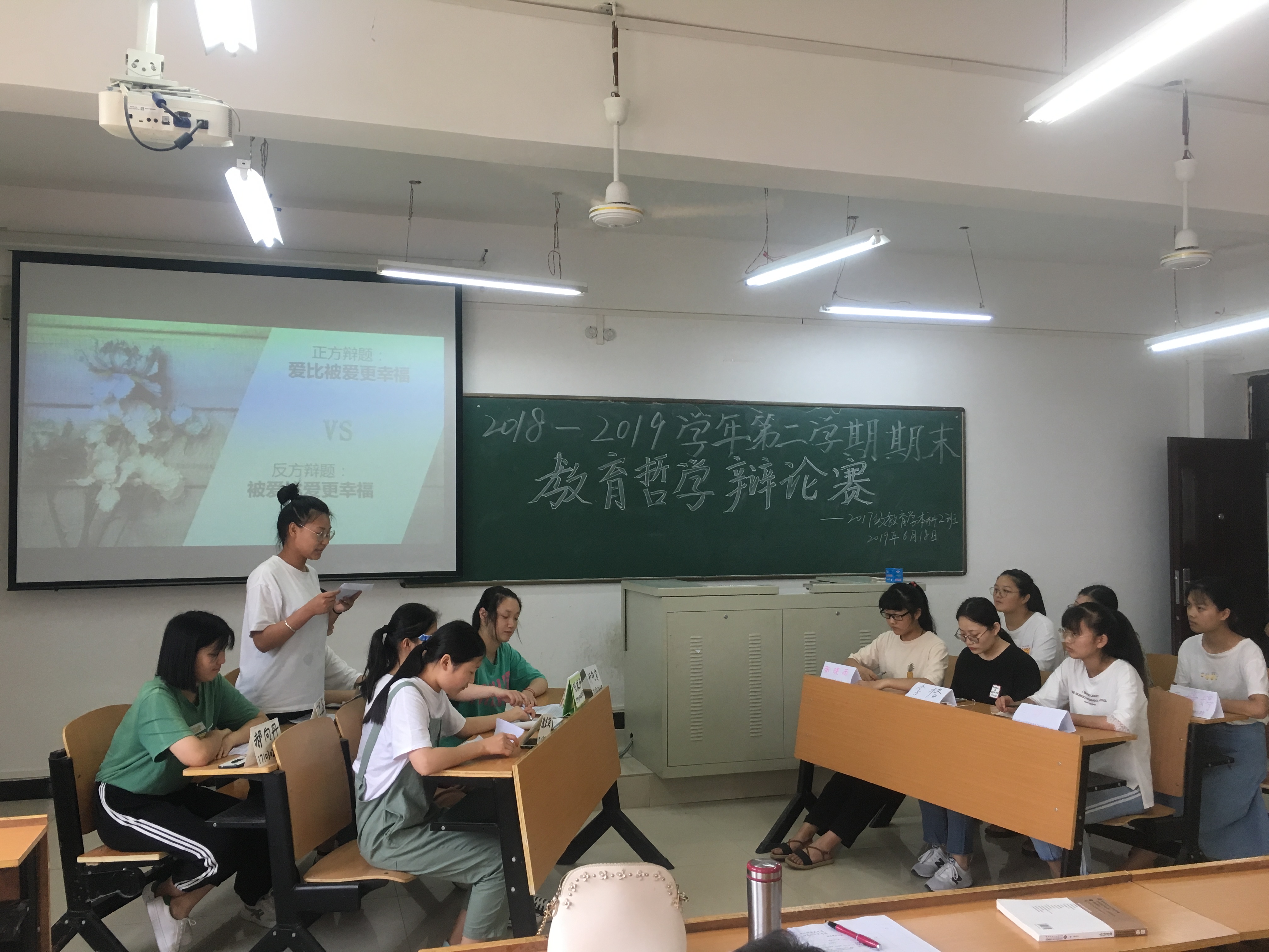 太阳集团tyc138小学教育教研室青年教师积极探索教学实践改革。6月17日和18日的下午,在该教研室担任《教育哲学》课程教学的刘俊言老师的指导下,以小组合作为组织形式开展课内辩论赛。太阳集团tyc138相关领导,专家教授代表谭细龙,小学教育教研室主任吴俊娜老师及小学教育教研室、教育学教研室多位老师担任评委。