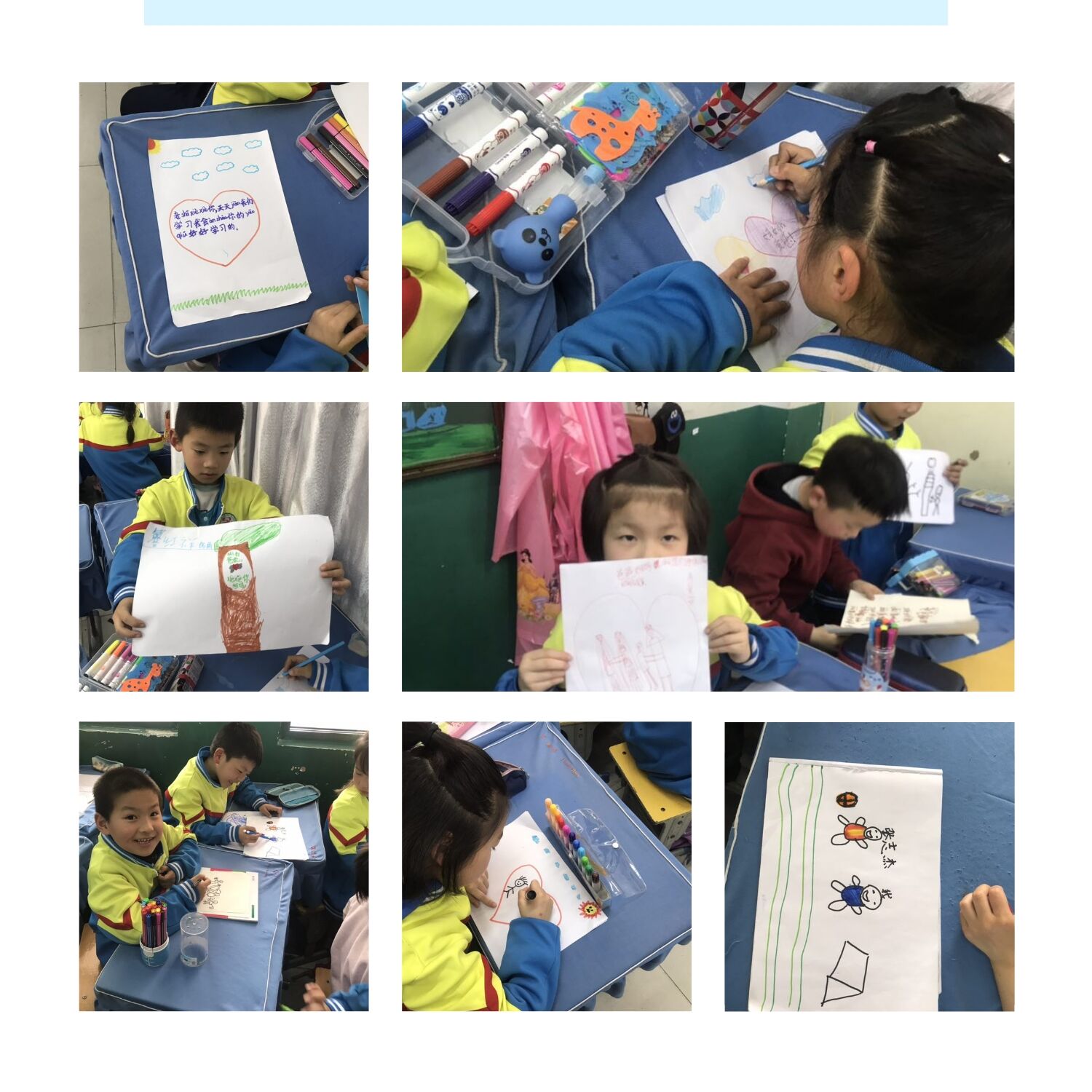 活动分为四个阶段,第一阶段团队成员为一年级小朋友播放了关于感恩教育的视频和图片,并向他们讲解了感恩教育的具体意义。同学们在老师的指导下理解了感恩的含义。第二阶段为故事分享阶段。助教老师分享了自己在小时候关于感恩的小故事,小朋友们受益匪浅。随后由主讲老师现场引导小朋友们分享自己在生活中关于感恩的小故事,同学们踊跃回答,气氛活跃。第三阶段为“一颗心”的游戏,助教将小组分好,把心形卡片给小组长,然后让每个同学依次选出自己在小组中最想感谢的同学,并说出感谢的原因,直到心形卡纸传递到最后一位同学手中。同学们积极参与,深化了自己对感恩的理解。第四个阶段为“感恩从我做起”,主讲和助教引导每位同学在自己的画纸上画出自己想给爸爸妈妈画的画,并写上自己想要说的话。同学们都拿起画笔,在画纸上画出了自己的画卷。最后,老师和同学们一起合唱歌曲《感恩的心》,在同学们美妙的歌声中结束了团体辅导课。