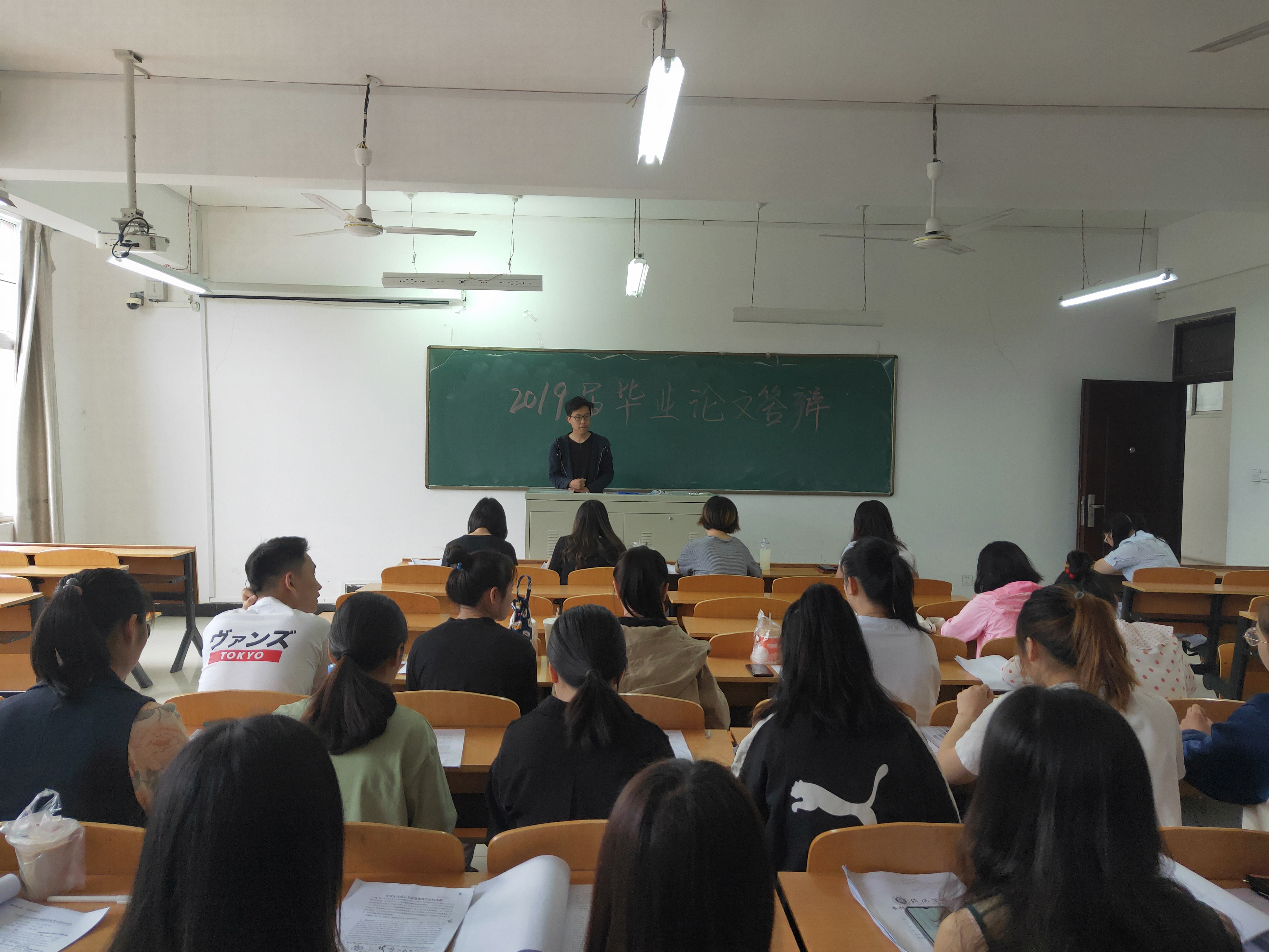 主答辩人首先宣读了答辩流程,提醒答辩学生做好答辩记录。按照每组学生答辩名单,接受答辩的同学在答辩时先作2-3分钟的论文自述,答辩老师根据学生的论文提问学生2-3个问题,学生当场作答。作答完毕答辩老师针对性的给同学们提出修改建议。各组所有学生答辩完毕,答辩小组及时评议,根据学生的论文质量与答辩情况给出成绩。