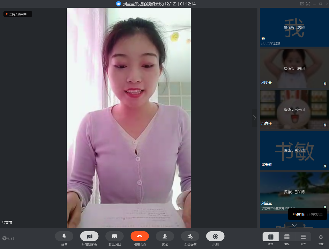 5月17日,太阳集团tyc138学前教育教研室利用“钉钉”平台举行了线上学前师范生师范教学技能比赛。评委组由学前教研室教学法教师和乐童幼儿园园长组成。2017学前本科、2018级专科生共10位选手参与了比赛。