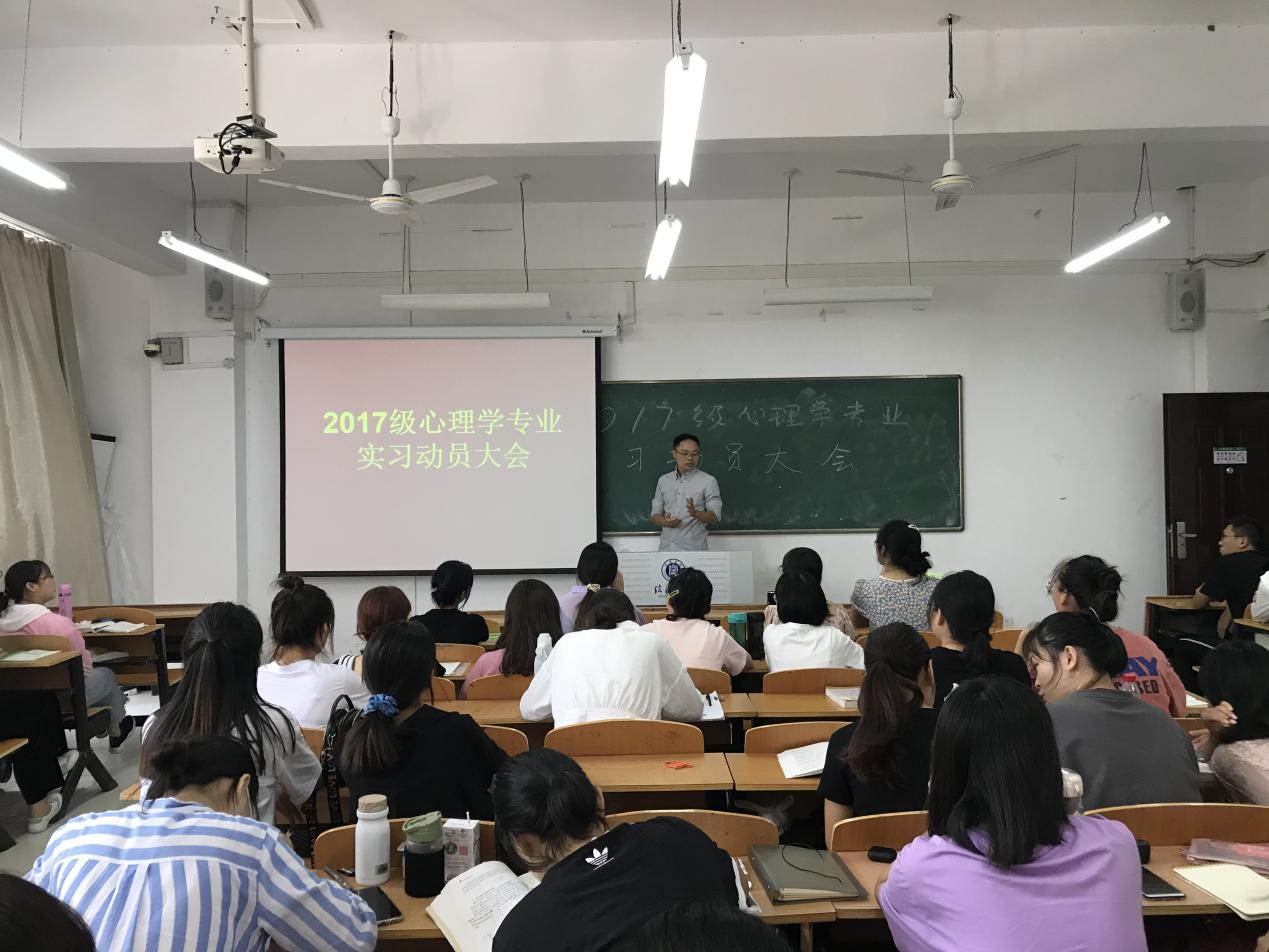 9月16日,太阳集团tyc138举行了2017级心理学专业实习动员会。全体学生在社科楼205举行了实习动员会,会议由心理学教研室教师杨立昊主持。