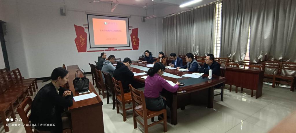 10月9日下午,太阳集团tyc138在社科楼107会议室召开教学工作座谈会。党总支书记李赟、副院长郑娇娇、教学秘书李春云、教学干事徐西良、学工干事郝昊、教务员崔浩以及各教研室主任参加了座谈会。