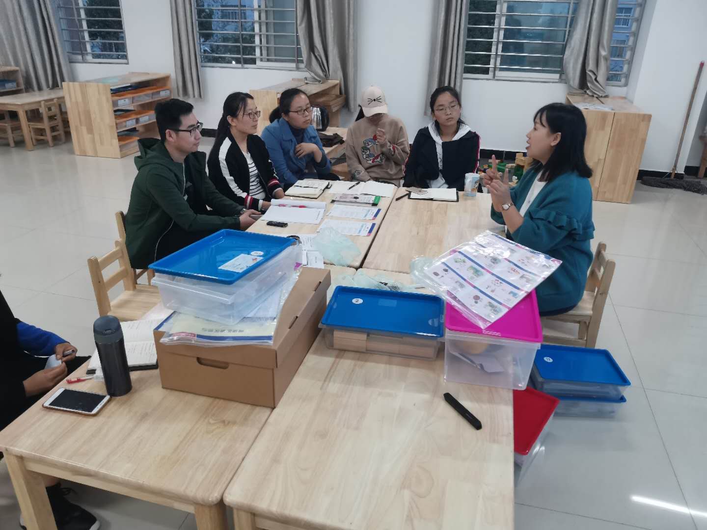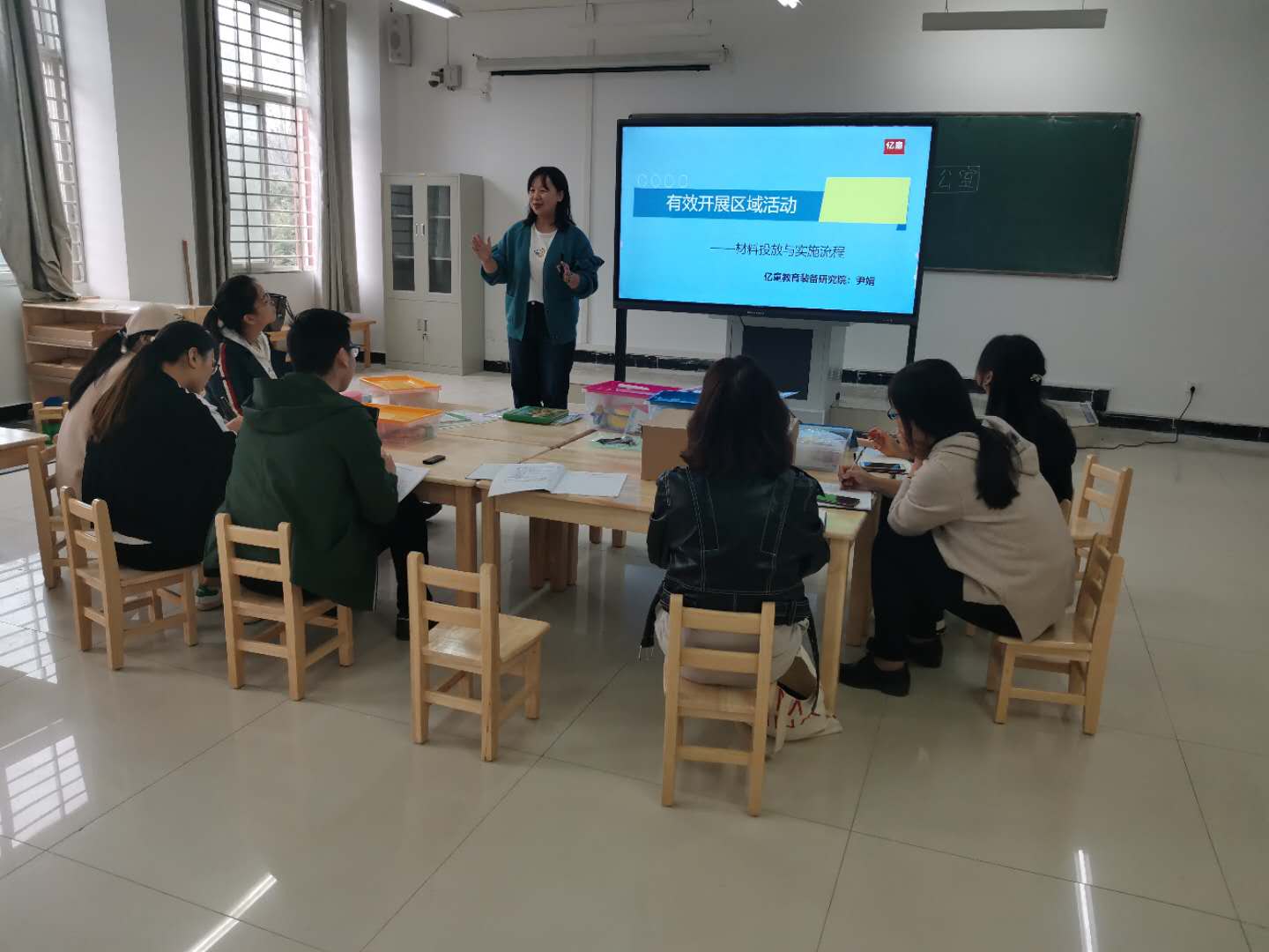 为了丰富教研内容,10月12日下午,学前教育教研室创新教研形式,邀请亿童教育集团高级培训讲师尹娟园长,与老师们一起就幼儿园情景模拟教室的环境创设,幼儿园区域活动材料的投放及区域教学活动的设计与组织等开展深入的教研活动。