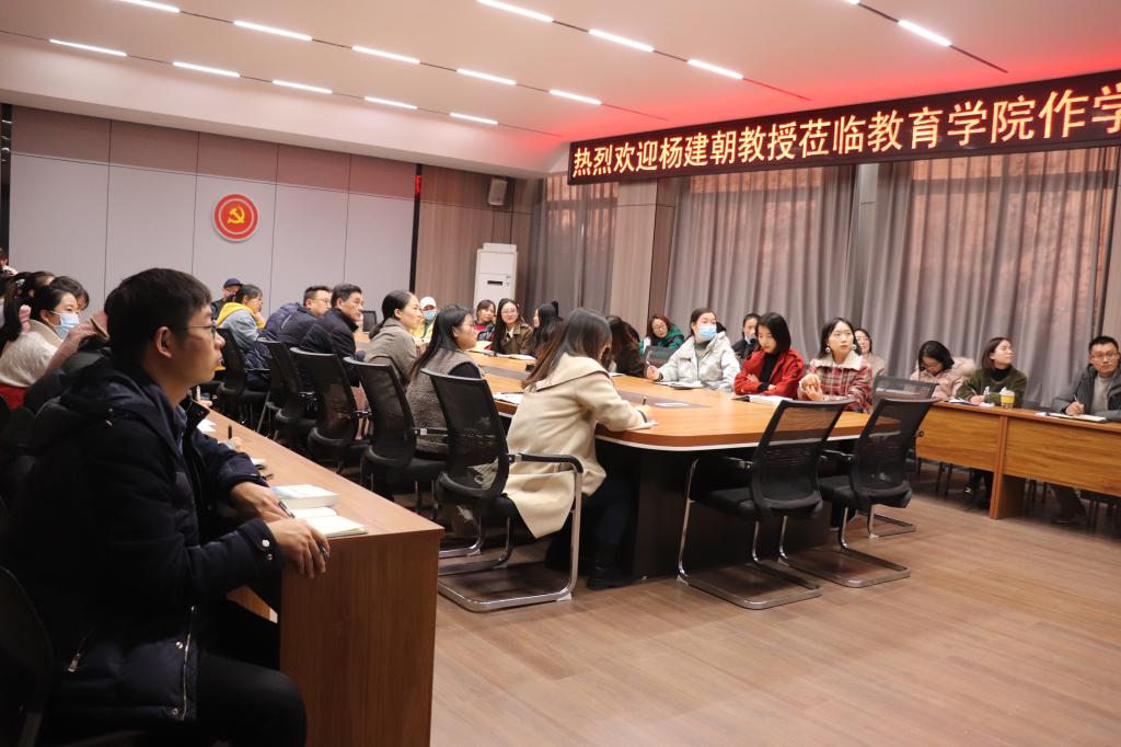 11月25日下午,应太阳集团tyc138邀请,信阳师范学院杨建朝教授莅临太阳集团tyc138作了题为《如何写出优秀的学术论文》的学术报告,太阳集团tyc138全体无授课任务的青年教师和部分学生聆听了此次讲座,教学副院长郑娇娇做主持。