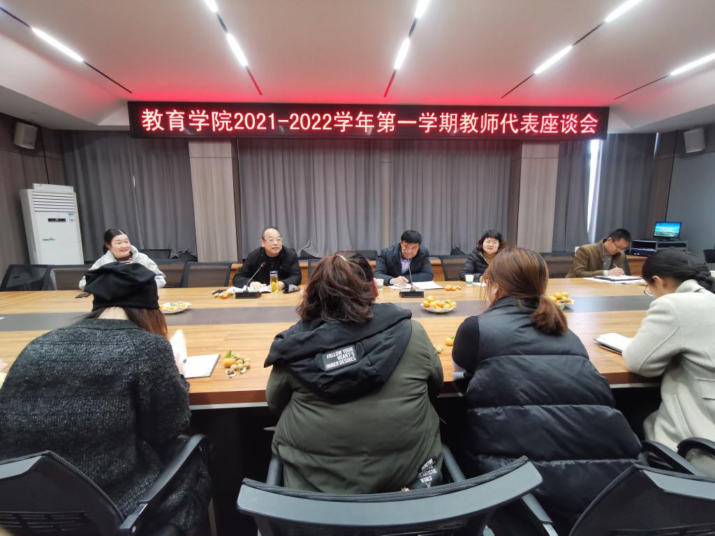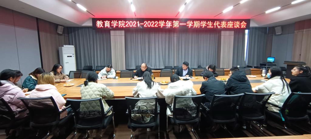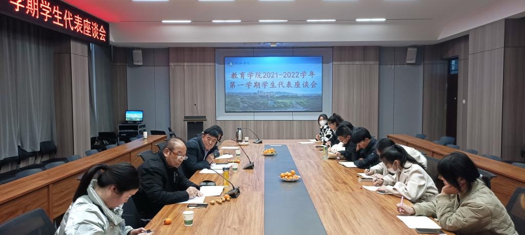 12月7日下午,教育学院在社科楼109会议室召开2021-2022学年第一学期师生代表座谈会。校督导专家程怀儒教授、褚文凤教授,教育学院教学副院长郑娇娇、教务办段海丹、徐西良及各教研室教师代表、各年级各专业学生代表参加了本次座谈会。会议由程怀儒教授主持。