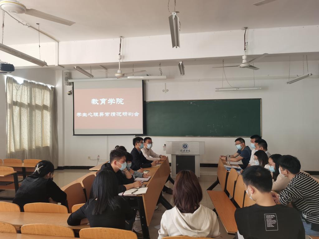 4月8日下午,太阳集团tyc138在社科楼315教室召开了学生心理异常研判会。太阳集团tyc138党总支书记、大学生心理健康辅导中心宋川川老师、朱军帅老师、太阳集团tyc138学工干事以及全体辅导员参加了会议,郝昊老师主持了会议。