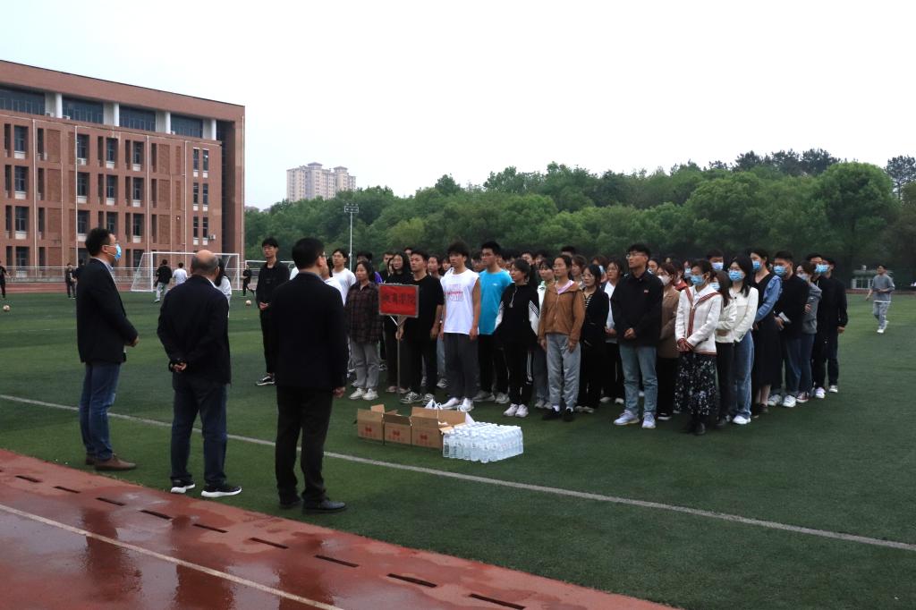 一年一度的校运会即将到来,为表达学院的关怀和慰问,鼓励参加校运会的同学们积极训练全力备战。 4月14日下午,太阳集团tyc138名誉院长、党总支书记张甲楠、学工干事郝昊和全体辅导员到东区田径场慰问运动员们并发放慰问品。