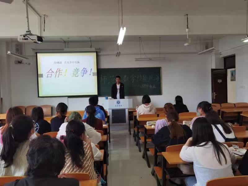 为进一步加强我院师范生专业技能培养,提高师范生教学技能,有效强化师范生教育教学实践,我院根据学校工作安排,开展了2019级师范生教学技能比赛。比赛共分为三个阶段:首先是2019级班级内部主动报名参赛,由辅导员老师、专业课老师负责评选出讲课较好的学生;其次是19级各专业内部展开比赛,学院领导要求各专业开展比赛时必须要有三名及以上的老师在场,以保证其公平性;最后各专业推选出讲课最好的一部分学生进行学院层面的复赛,最后推选出8位教学基本功最扎实的学生参加学校的决赛。