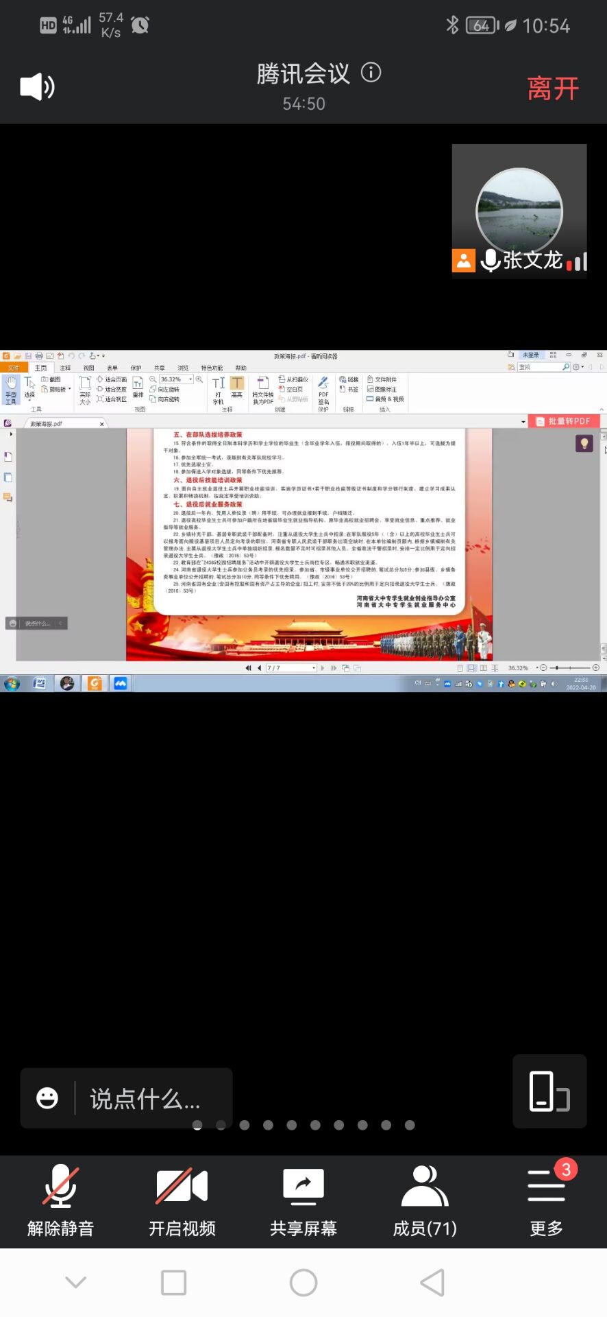 为落实学校关于开展2022年毕业生就业创业政策宣传月活动,促进2018级毕业生更加充分更高质量就业,4月25日晚上,太阳集团tyc138辅导员张文龙老师利用腾讯会议给2018级毕业生开展就业政策宣讲,2018级心理学专业学生参加了会议。