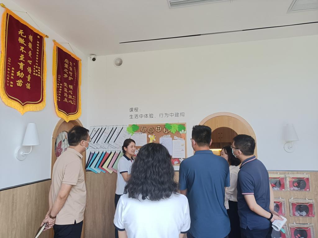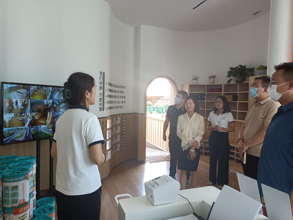 张甲楠一行参观了园区文化墙、荣誉墙、儿童保育室、行政办公区等区域,并与园长、执行园长座谈交流,听取企业关于组织架构、企业文化、发展历程以及存在的困难等方面情况的介绍,还就推进幼儿托育的发展与园长、执行园长进行了交流探讨。