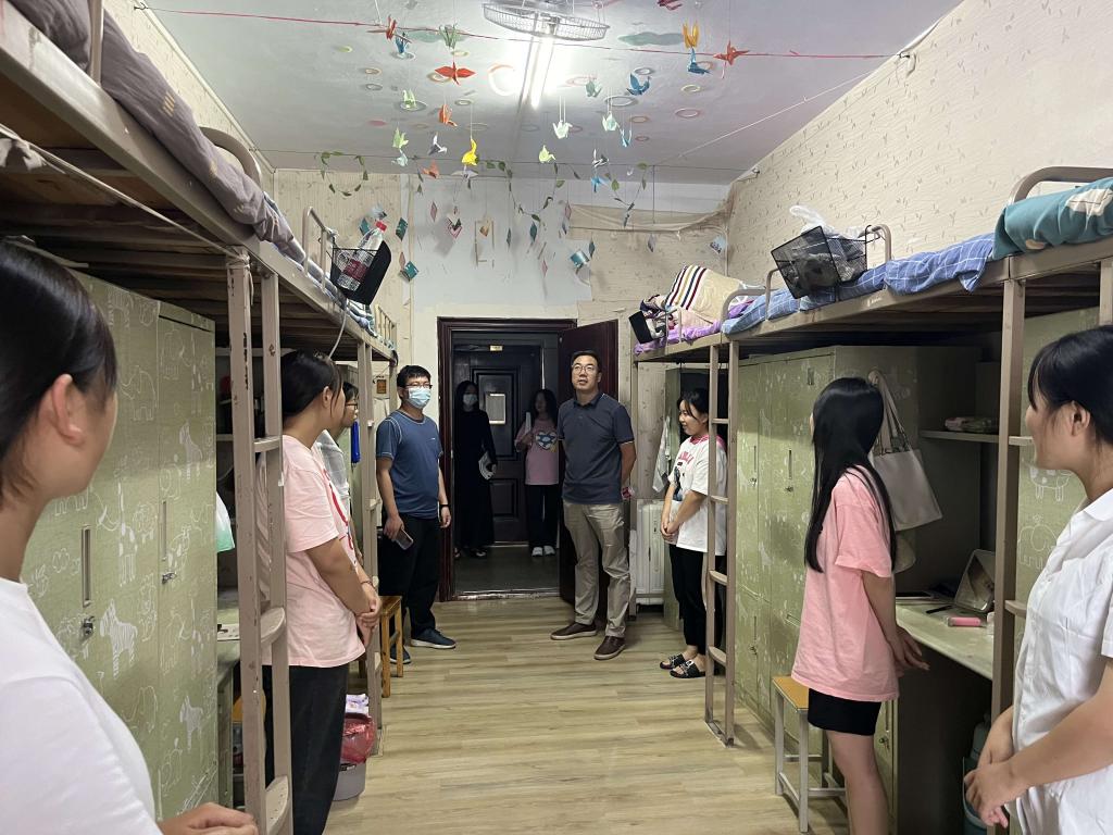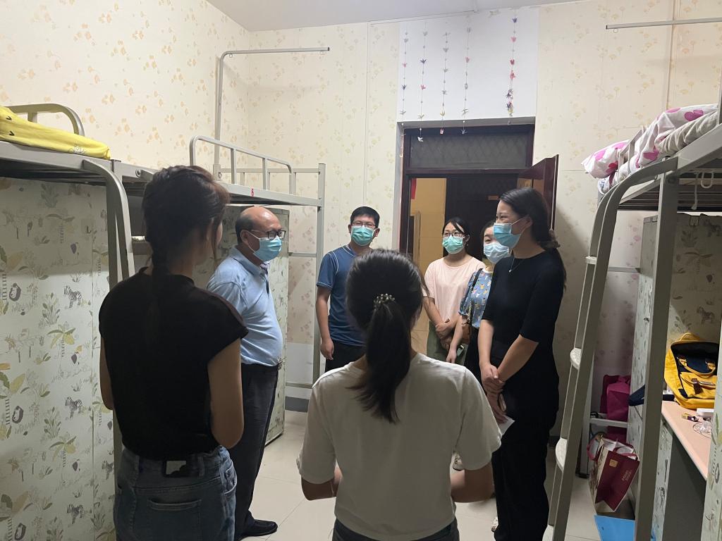 9月17日,太阳集团tyc1382022级新生陆续顺利入校,为了解新生们的入校适应情况,17日下午,学院名誉院长、党总支书记张甲楠、教学副院长段海丹、其他班子成员及新生辅导员前往学生宿舍看望新生,详细了解新生情况。