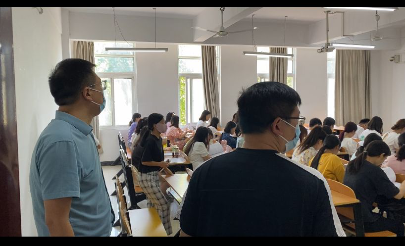为进一步加强我院学风建设,确保课堂秩序有序进行,9月13日,党总支书记张甲楠、学工干事郝昊及全体辅导员开展新学期线下第一节课查课工作。