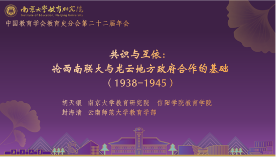 胡天银在“教育的传播交流与高等教育高质量发展(上)”分会场做了《共识与互依:论西南联大与龙云地方政府合作的基础(1938-1945)》的报告。其指出,抗战时期联大与龙云地方政府坚持抗日与共赴国难的抗战信念,抵制独裁与支持民主的政治态度,发展教育与培养人才的教育认知是双方在一系列关键社会问题上的共识,展现了联大的使命意识和龙云地方政府的责任意识,是双方合作的前提。资源依赖是双方合作的现实考量。龙云地方政府对联大充满期待,希望联大学人能够运用所学服务战时云南地方经济、教育、文化发展需要,也希望从联大获取抗衡国民党中央集权的话语资源。联大作为内迁大学,在衣食住行、教学科研、经费保障、反动威胁等方面需要龙云地方政府的支持、配合与保护。滇省有识之士的倾力协助与促成府学合作中发挥着“中介”桥梁作用。