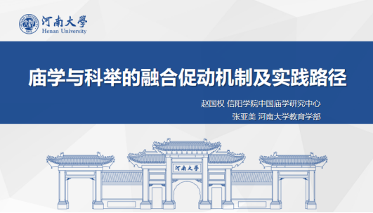 赵国权教授在“教育的传播交流与基础教育高质量发展”分会场做了《庙学与科举的融合促动机制及实践路径》的报告。庙学是封建时代官办育才场所,科举是封建时代选才方式,两种不同的制度结缘于隋唐,基于价值导向的趋同性而得以融合促动。其融合促动是全方位的,在建筑空间上,庙学常被用作科举童试的场所,科举除拥有号房、执事楼、文昌宫等相对独立的空间外,庙学的祭祀、教学空间也带有明显的科举痕迹,隐藏着丰富的科举意蕴;在教育教学活动上,科举元素渗透到庙学的学官管理、生员管理、教学内容和教学方法之中;在常规仪式方面,在庙学内举办的进学礼、宾兴礼和科贡题名活动等都是庙学与科举融合促动的真实呈现,深刻影响着读书人的价值观和社风民俗,成为优秀传统文化不可分割的一部分。