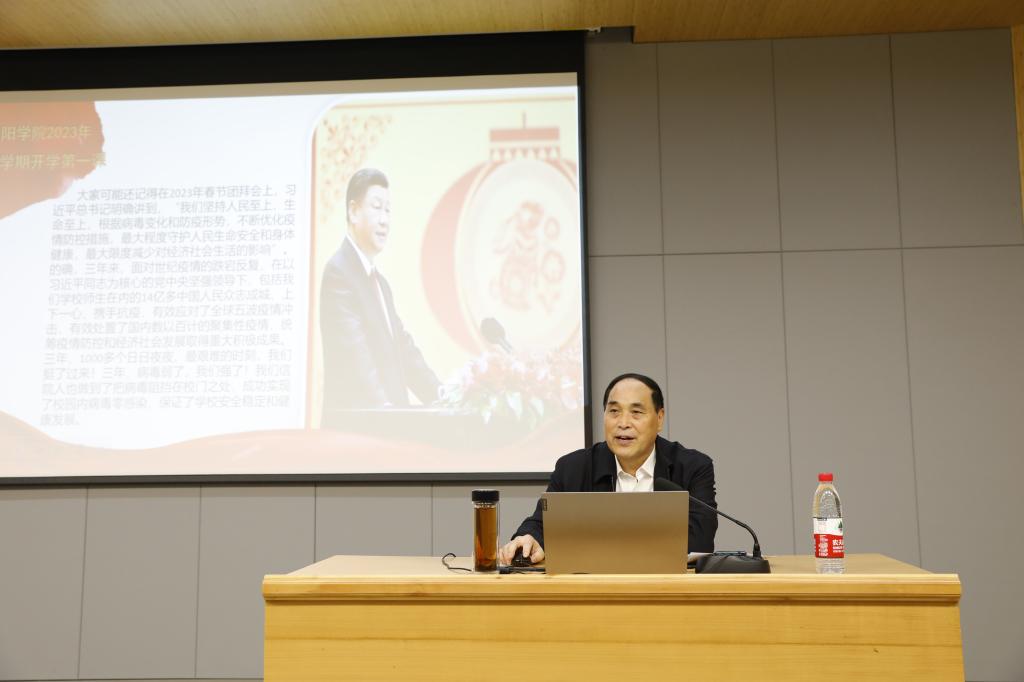 王北生围绕三年抗疫的非凡实践、三年抗疫的成功经验、让青春在新时代绽放绚丽之花三个方面,为师生们讲授了一堂生动的思政课。他结合ok138cn太阳集团优秀学子成长成才的故事,勉励广大青年学生奋发图强,学好本领。