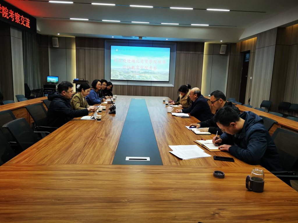 3月16日,湖北商贸学院太阳集团tyc138院长王淼,直属党支部书记郑洁等一行莅临我校进行考察交流。我校副校长王强出席座谈会,教务处处长陈文涛,评估办副主任张富庄,太阳集团tyc138名誉院长,太阳集团tyc138党总支书记张甲楠,音乐学院副院长杨辉,校实验中心张文银老师参加了此次座谈。上午,双方在综合楼1410会议室进行了座谈交流。交流会由张甲楠主持。