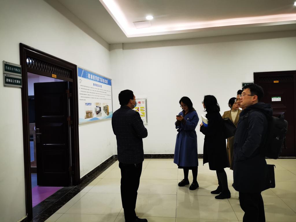 会后,王淼一行前往学校创新创业大厦,先后参观了普通话测试静音舱、粉笔字实验室、毛笔字实验室、微格教室等师范类专业实验室,深入了解了我校在师范生培养及技能训练方面的开展情况。