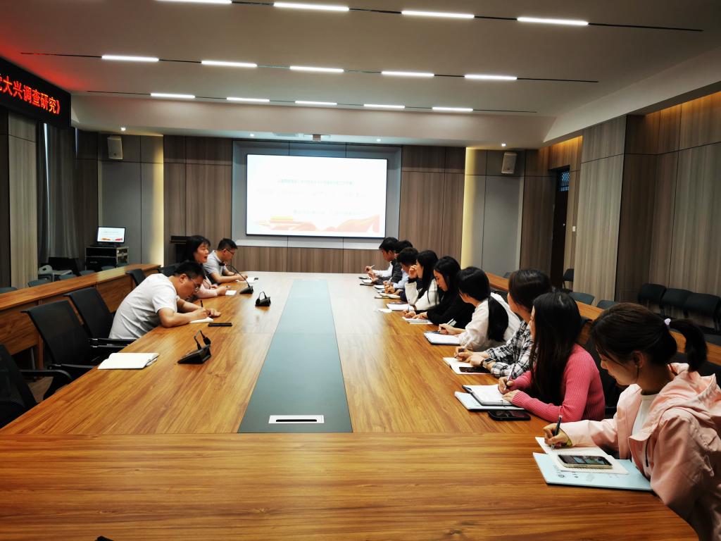 会议伊始,段海丹同志带领大家一起学习了习近平总书记关于调查研究的重要论述,希望同志们大力弘扬党重视调查研究的优良传统,促进党员干部特别是领导干部带头深入调查研究,扑下身子干实事、谋实招、求实效。并重点从重视调查研究是党的重要传家宝这一方面进行展开。