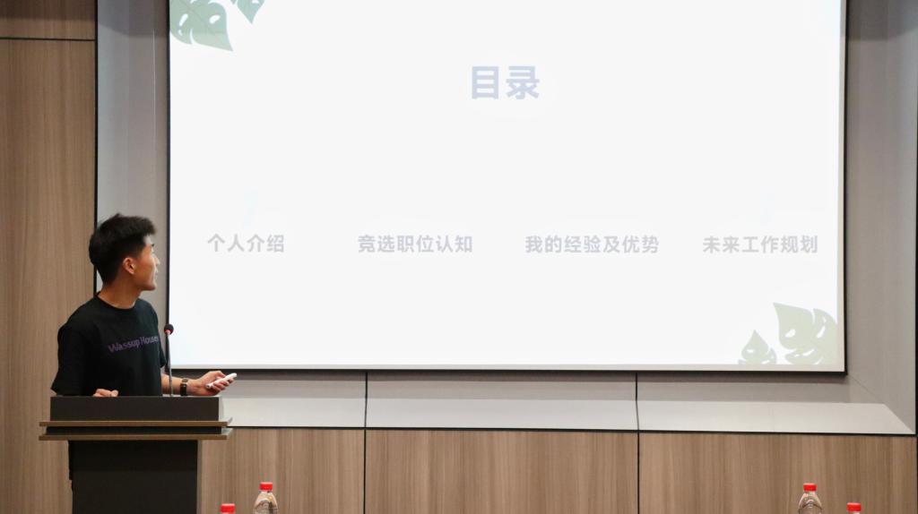 最后,学工干事郝昊对本次竞聘进行了总结,指出现阶段主席团竞选职位不全面的问题,希望各部门之间能够紧密加强联系。