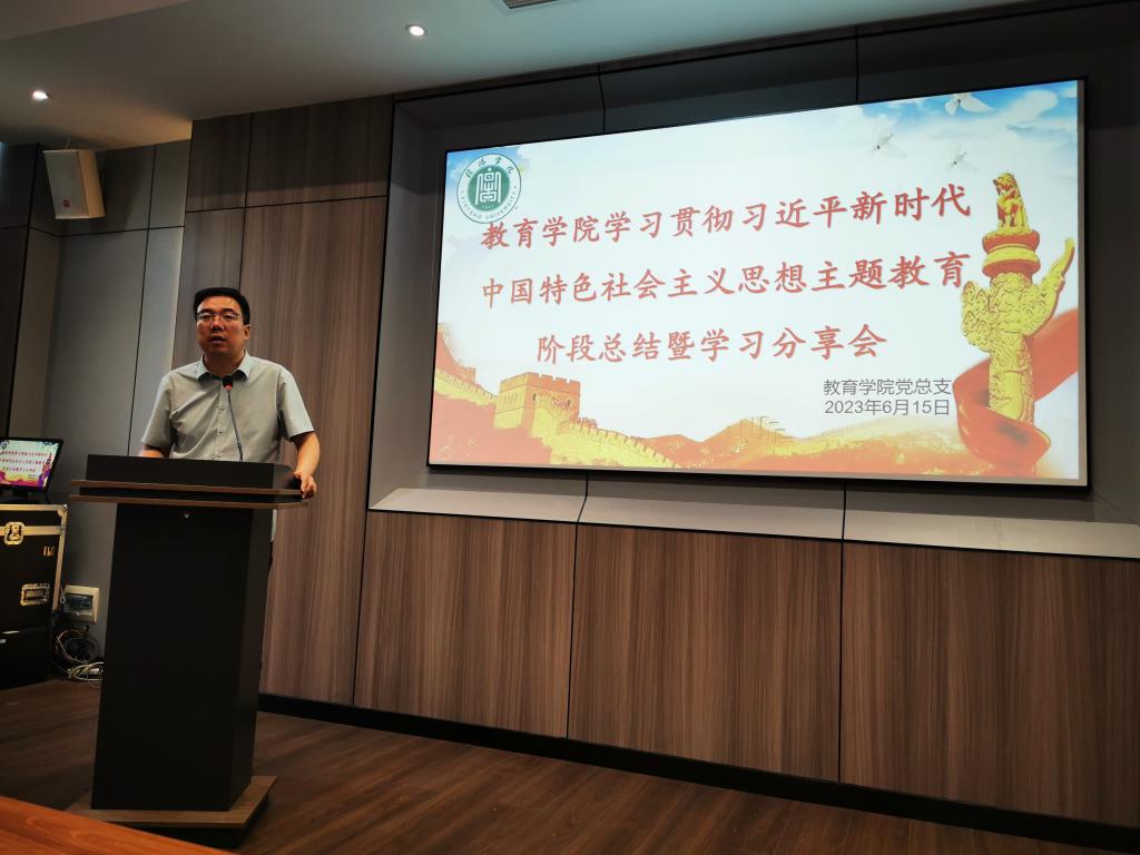 接着,由各支部推荐的15人参与的学习心得分享会在大家热烈的期待中展开。中国式现代化解读、改革开放史感悟、“立德树人,以人民为中心发展教育”“用奋斗书写青春华章”“让‘种子精神’深植大地”“读懂青春‘关键字’ 共筑梦想‘新篇章’”“感悟时代思想,凝聚奋进力量”等心得紧扣党的二十大报告和习近平新时代中国特色社会主义思想,是大家本阶段主题教育学习的收获结晶。张甲楠书记分享了以“践行宗旨,为民造福”为主题的学习心得。他从“深学细悟,践行宗旨”和“感恩思进,实干担当”两方面进行了详细阐述。