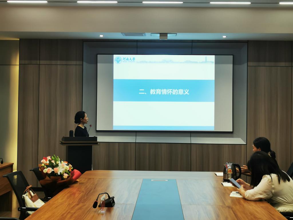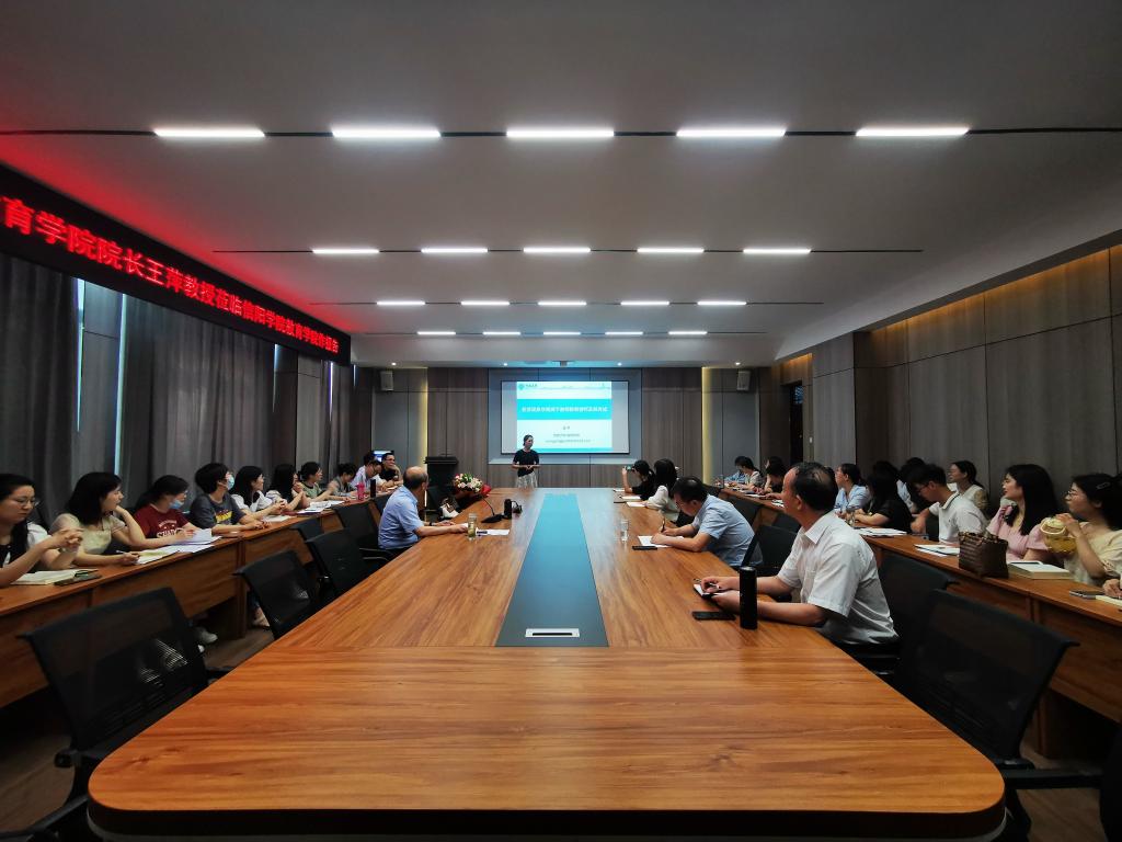 6月20日下午3点,太阳集团tyc138邀请了河南大学太阳集团tyc138院长、博士生导师王萍教授在109会议室作了题为“教育现象学视阈下教师教育情怀及其养成”的学术报告。名誉院长、党总支书记张甲楠、教学副院长段海丹及班子成员和全体青年教师到场聆听了报告。名誉院长主持了报告。