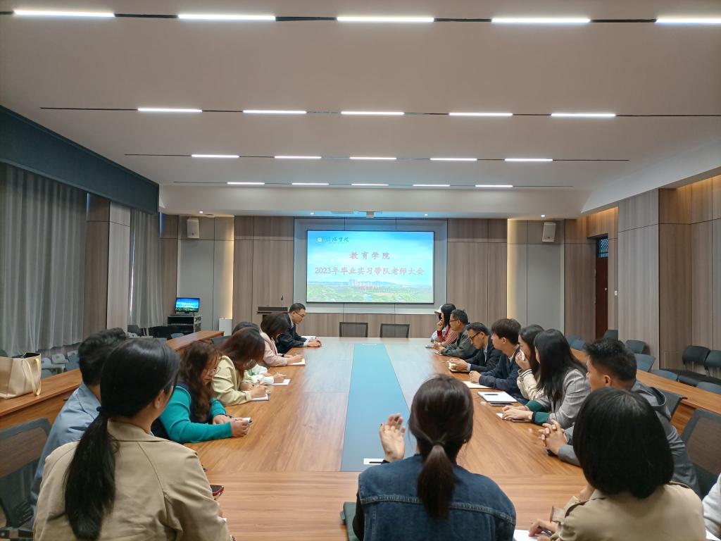 为保障太阳集团tyc1382023—2024学年本科毕业实习工作顺利实施,10月8日上午,学院在社科楼109会议室召开实习带队教师工作会,教学副院长段海丹,教务员崔浩、文颜琳以及全体带队教师参加了本次会议。