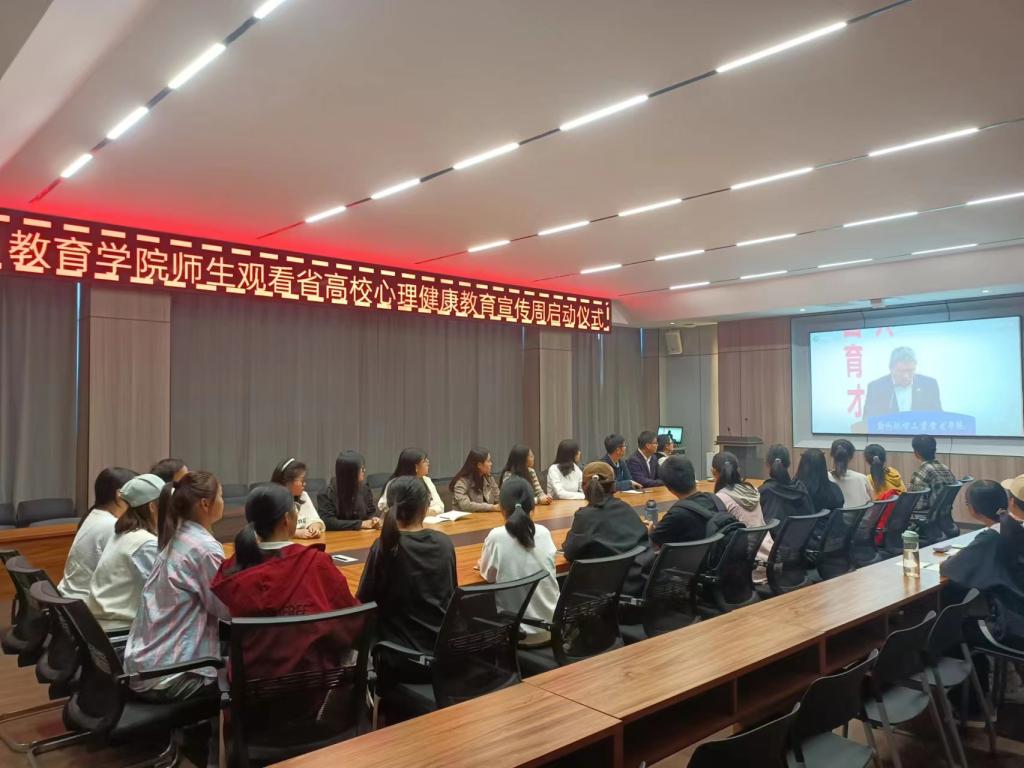 为深入学习贯彻党的二十大精神,贯彻落实习近平总书记关于加强学生心理健康教育工作的重要指示批示精神,进一步提升学院心理育人工作质量,提升大学生心理健康水平,10月17日上午9:30,我院在109会议室以视频的形式组织观看了省委教育工委、省教育厅在郑州航空工业管理学院举行的“2023年全省高校心理健康教育宣传周活动”启动仪式。我院二级心理辅导站站长、大学生心理健康教育通识课程教师、各班心理委员现场参与。