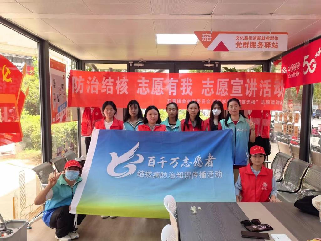活动期间,宣讲团与共青团郑州市金水区委志愿宣讲团、浉河区疾控中心和我校工会、校团委、校医院等部门联合开展了志愿宣讲系列活动,服务对象面向商户、青少年、在校生、返乡大学生、中老年人、户外劳动者等,实践活动形式多样,内容包括问卷调查、防核知识竞答、“防核有我”签名等环节,使更多的民众了解到结核病的传染性和危害性,营造社会共同关注、积极防范的良好氛围。