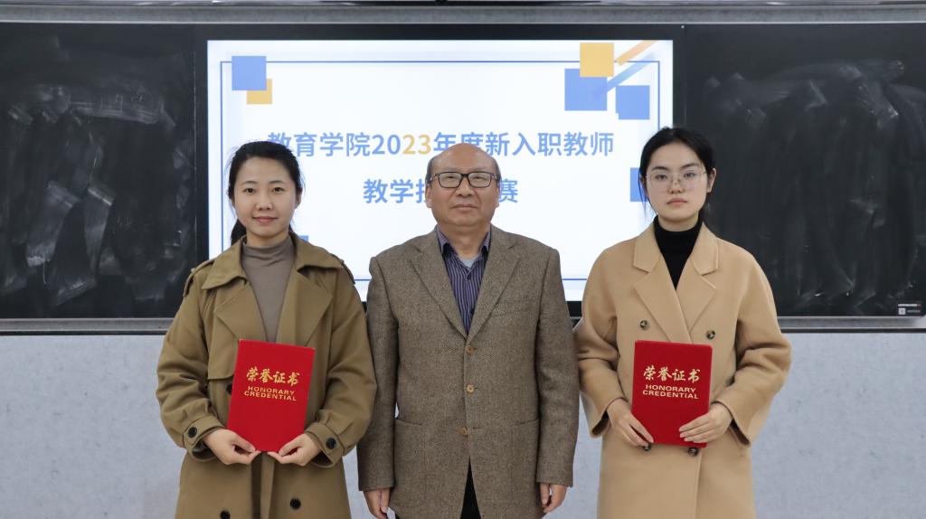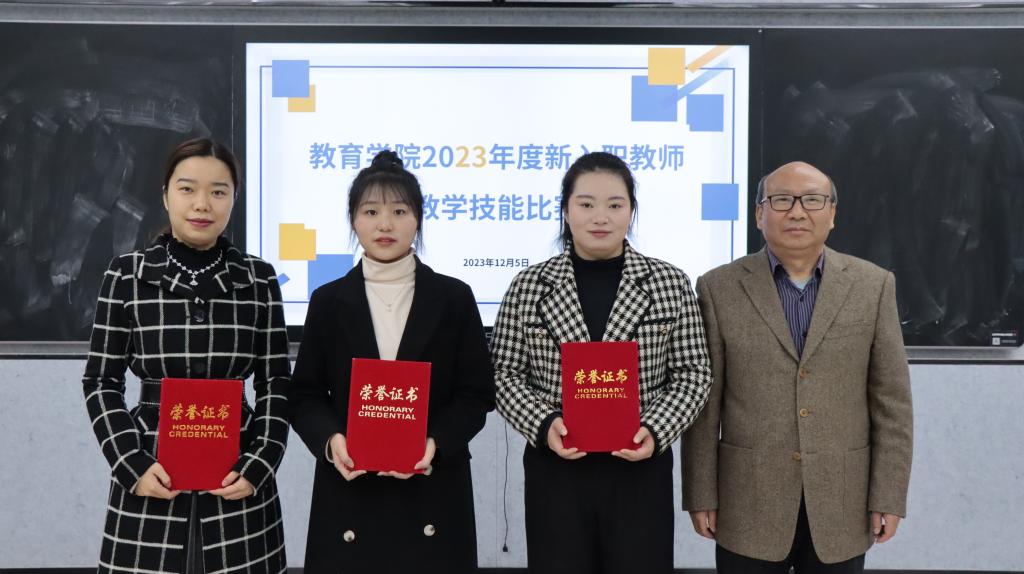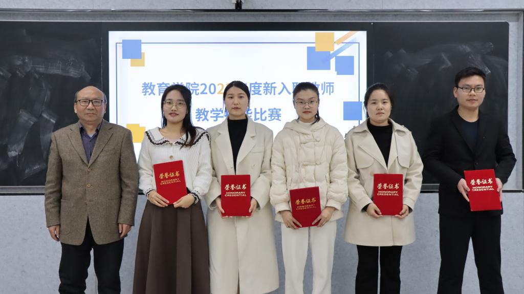 比赛中教师们以积极饱满的精神状态、轻松自如的教态和富有感染力的语言进行了生动的演示解说,充分展示了自己运用教育学理论研究教材和设计教学的能力,充分发挥了自己的潜能。比赛结束,由王可教授进行点评,指出了各位老师的优缺点,为各位老师提供了改进方向。最后,樊秋俊、靖淑针老师获得一等奖,文颜琳、夏彬彬、赵天夏老师获得二等奖,张雷、王雪静、黄玉、杨俭俭、马慧丽老师获得三等奖,名誉院长为获奖者颁奖,并合影留念。
