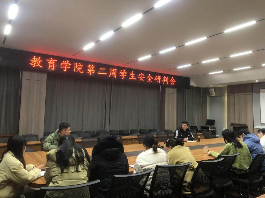 3月4日下午,教育学院在社科楼109会议室召开了第二周学生安全工作研判会,学工负责人郝昊及全体辅导员参加了此次会议。会议由郝昊主持。