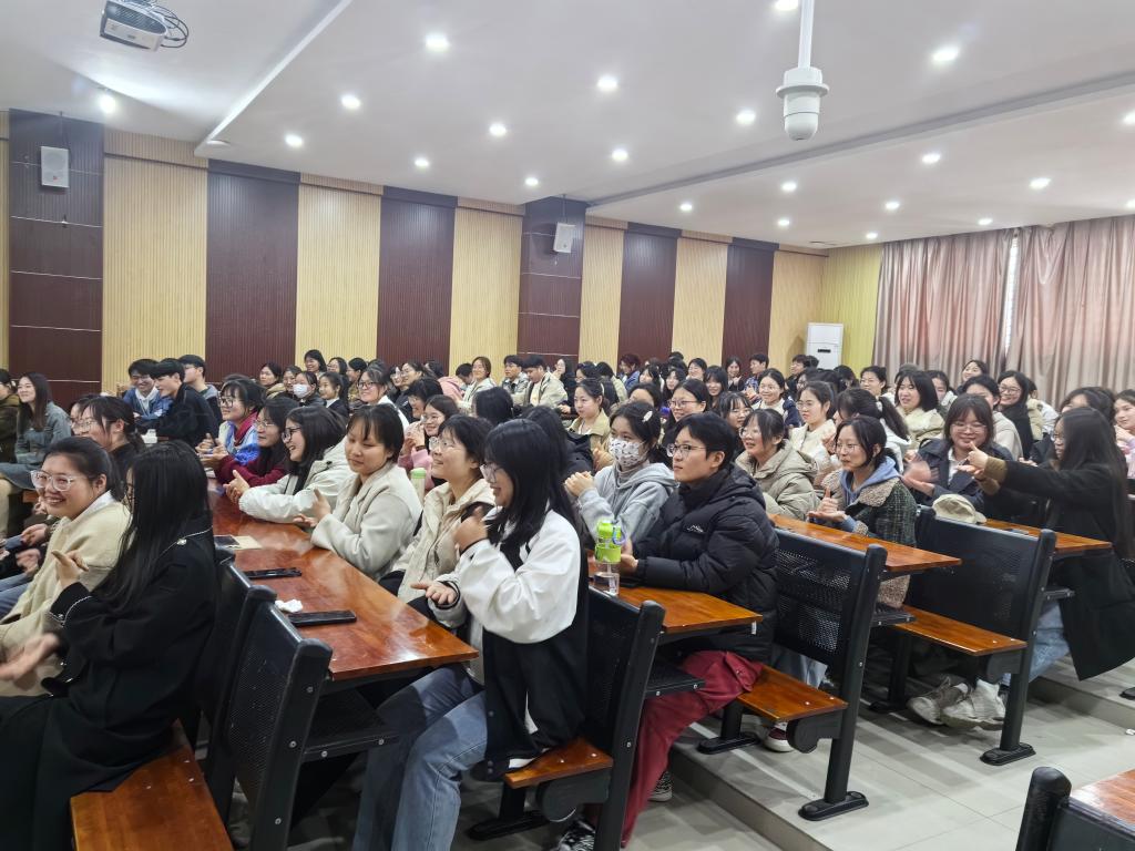 首先,叶老师向同学们介绍了特殊教育的基本理念,通过照片、视频等展示真实的特殊教育学校,介绍特殊教育学校中课程、教学等基本情况。接着,叶老师介绍了特殊教育的教育理念和教学方法。特殊教育强调以孩子为中心,关注他们的个体差异和需求,通过多元化的教学手段和策略,激发他们的学习兴趣和动力。并通过案例展示了特殊教育的成果和价值,为同学们提供了宝贵的经验,引发同学们深刻的思考。最后,叶老师教同学们用手语表达“爱是我们共同的语言”,赢得了一片掌声。