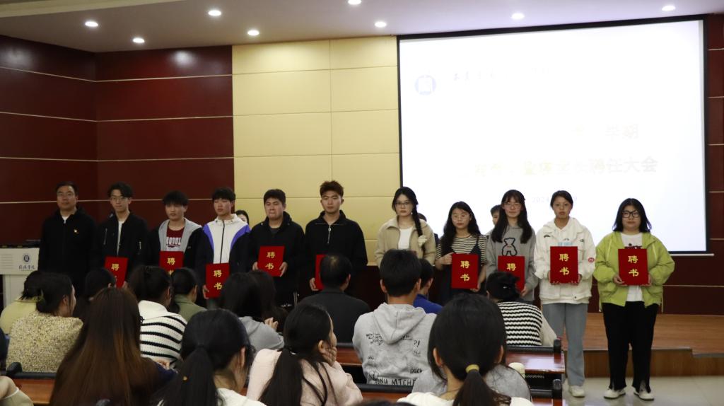 张甲楠书记和学工干事郝昊分别为楼层长和寝室长颁发了聘书。在热烈的掌声中,各楼层长和寝室长接过聘书,纷纷表示这不仅是对他们个人能力的认可,更是对他们肩上重任的寄托。