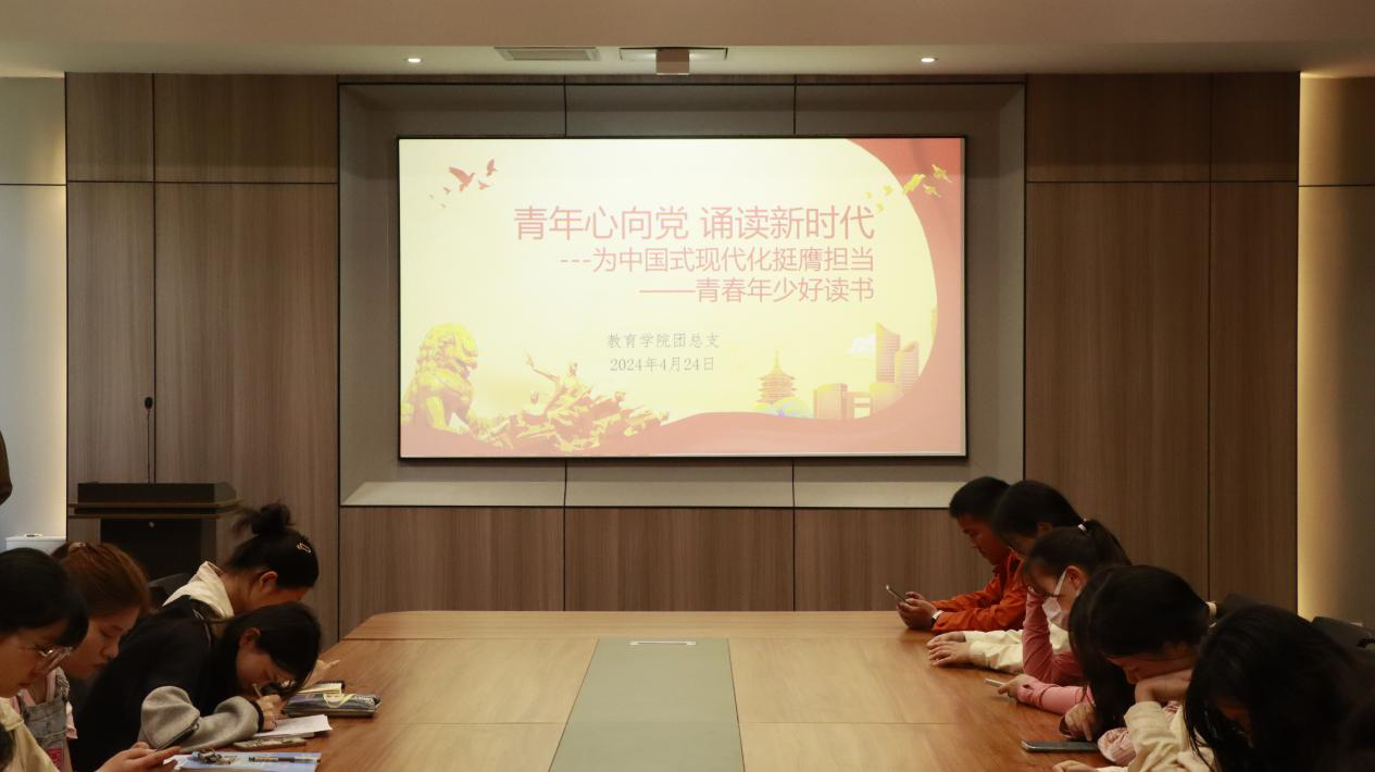 4月25日,太阳集团tyc138团总支和点津教育学社在109会议室举办了“青年心向党,诵读新时代”红色主题读书分享会。点津教育学社和学生会组织部和宣传部全体成员参加了此次分享会。