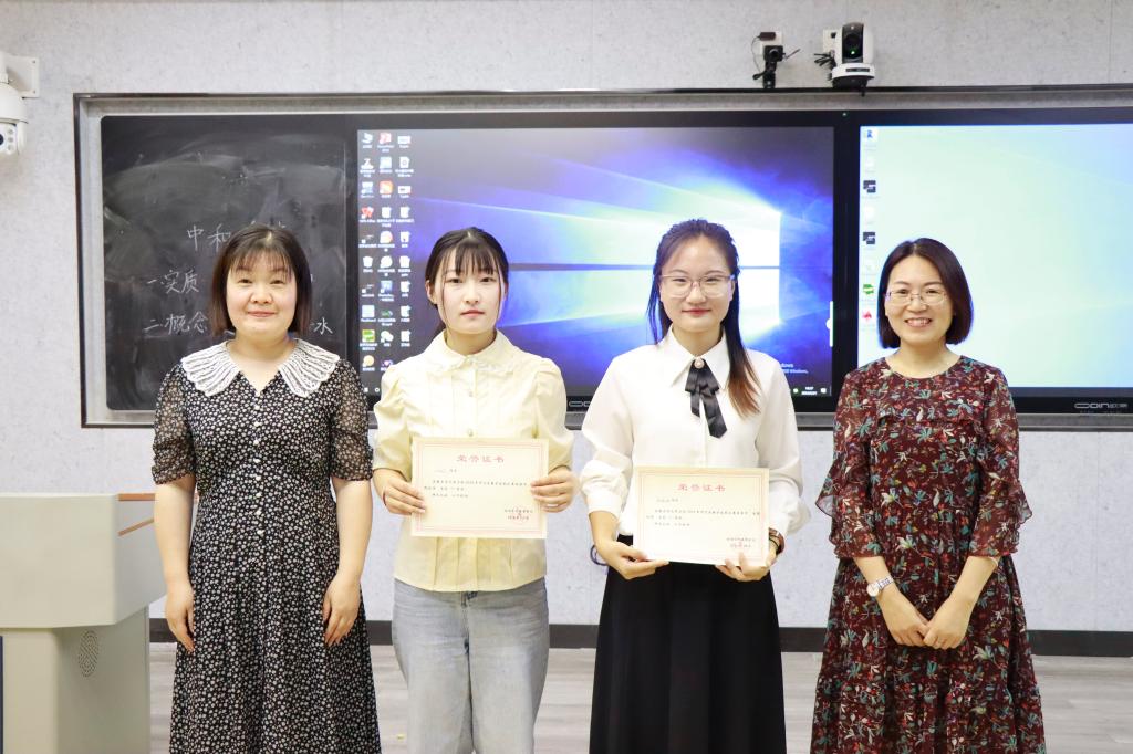 经过激烈角逐,冷风杰、张瑶瑶获得了一等奖,陈梦杰、黄梦瑶、孟瑞雯获得了二等奖,闫紫薇、王丹洁、刘田圆、胡小玉获得了三等奖。颁奖环节,学院党总支书记刘颖芳、副院长段海丹、学工干事郝昊为获奖选手颁发了荣誉证书并与选手合影留念。