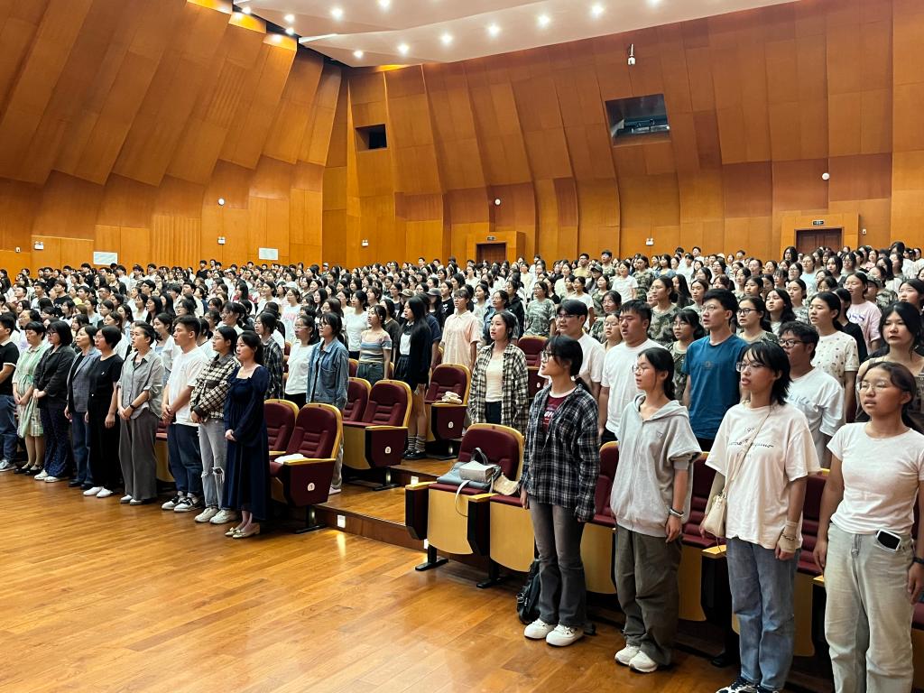 党总支书记刘颖方在主持时也对2024级新生同学提出了殷切期望。一是希望同学们尽快适应环境。适应目前的集体生活、适应周围的同学和室友、适应新专业的学习。二是早规划。希望同学们认真思考:我为什么上大学?我如何度过我的四年大学生活?我毕业之后想干什么?想清楚这几点,找准方向。三是早行动。初心易得,始终难守。希望同学们脚踏实地,把规划落实到每天的具体行动中,学会制定自己的每天计划并付诸行动,不要束之高阁。四是要坚持。学习本来就是一件苦差事,同学们从12年中、小学的苦读中走来,迈向求学中自主学习的四年大学生活,希望同学们久久为功行而不辍。路虽远,行则将至,事虽难,做则必成。面对新学期新起点,希望大家都能在心里默默种下理想的种子,扬起奋进的船帆,用勤劳的汗水浇灌,用四年的坚守呵护,让梦想在2028年开出灿烂夺目的花朵!