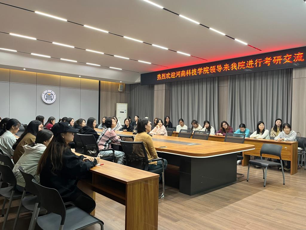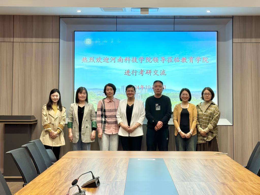 10月10日下午,河南科技学院教育科学学院副院长刘秋云、研究生招生负责人闫梅红一行来我院进行考研交流,学校教务处丁海波老师、我院名誉院长、党总支书记刘颖方、副院长段海丹热情接待了刘院长一行。