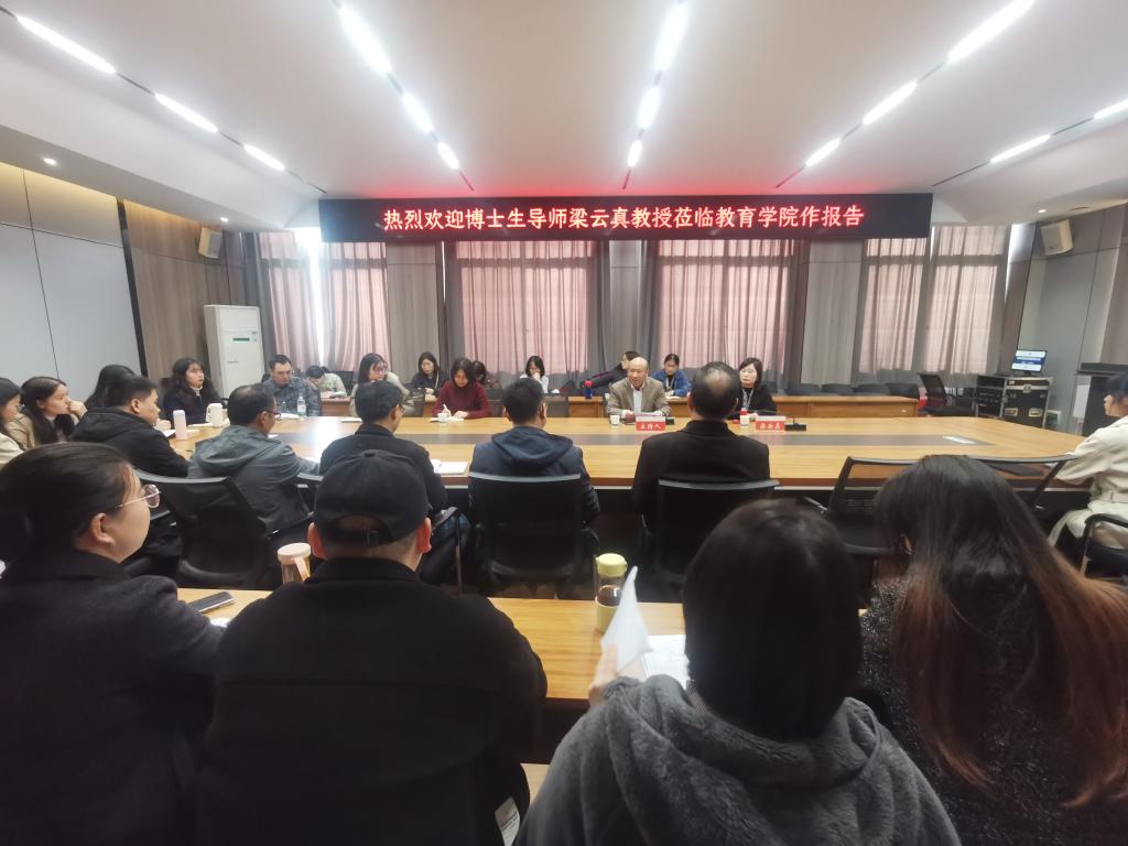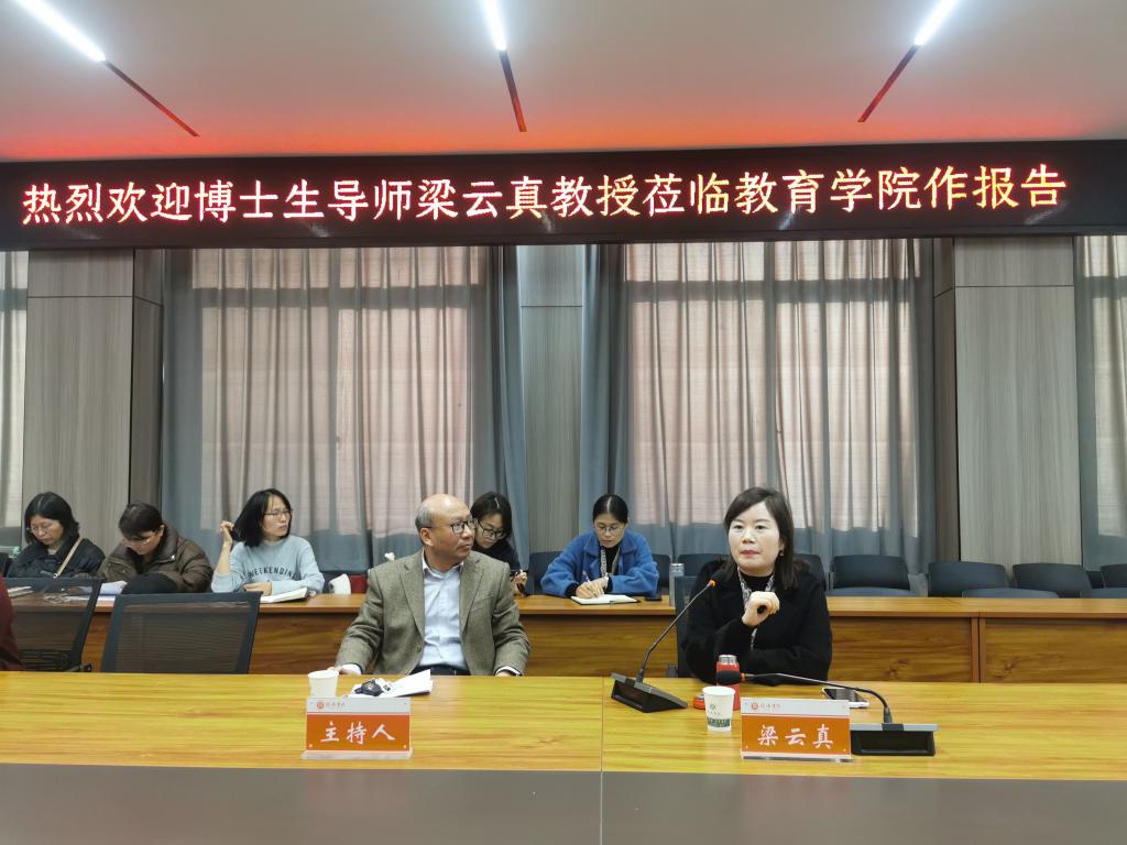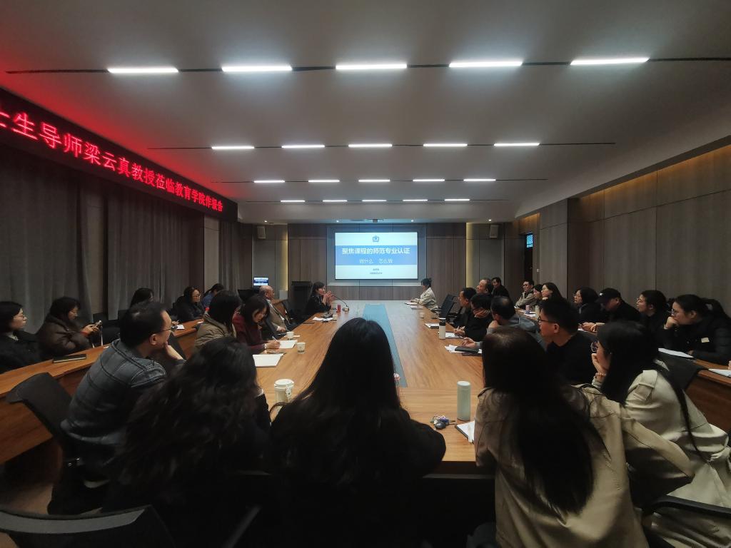 11月21日下午,太阳集团tyc138邀请河南师范大学博士生导师梁云真教授在社科楼109会议室作了题为“聚焦课程的师范专业认证:做什么和怎么做”的报告,名誉院长、党总支书记刘颖方、副院长段海丹、专家教授赵国权和全体无授课任务的青年教师到场聆听了报告,报告会由名誉院长主持。